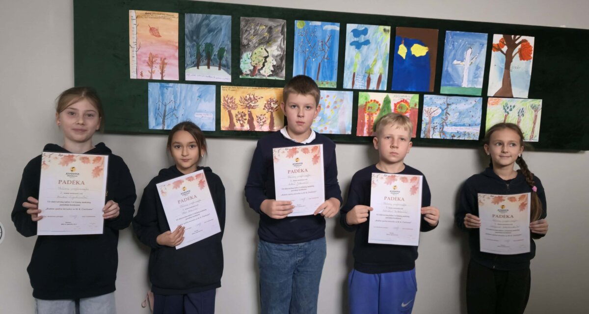Pirmokai ant spausdintinių raidžių piešė gamtos motyvus, o trečiokai piešė rudenį pagal Čiurlionio spalvų gamą ir rašė, kas jiems yra ruduo. Konkurso dalyviams įteiktos padėkos.