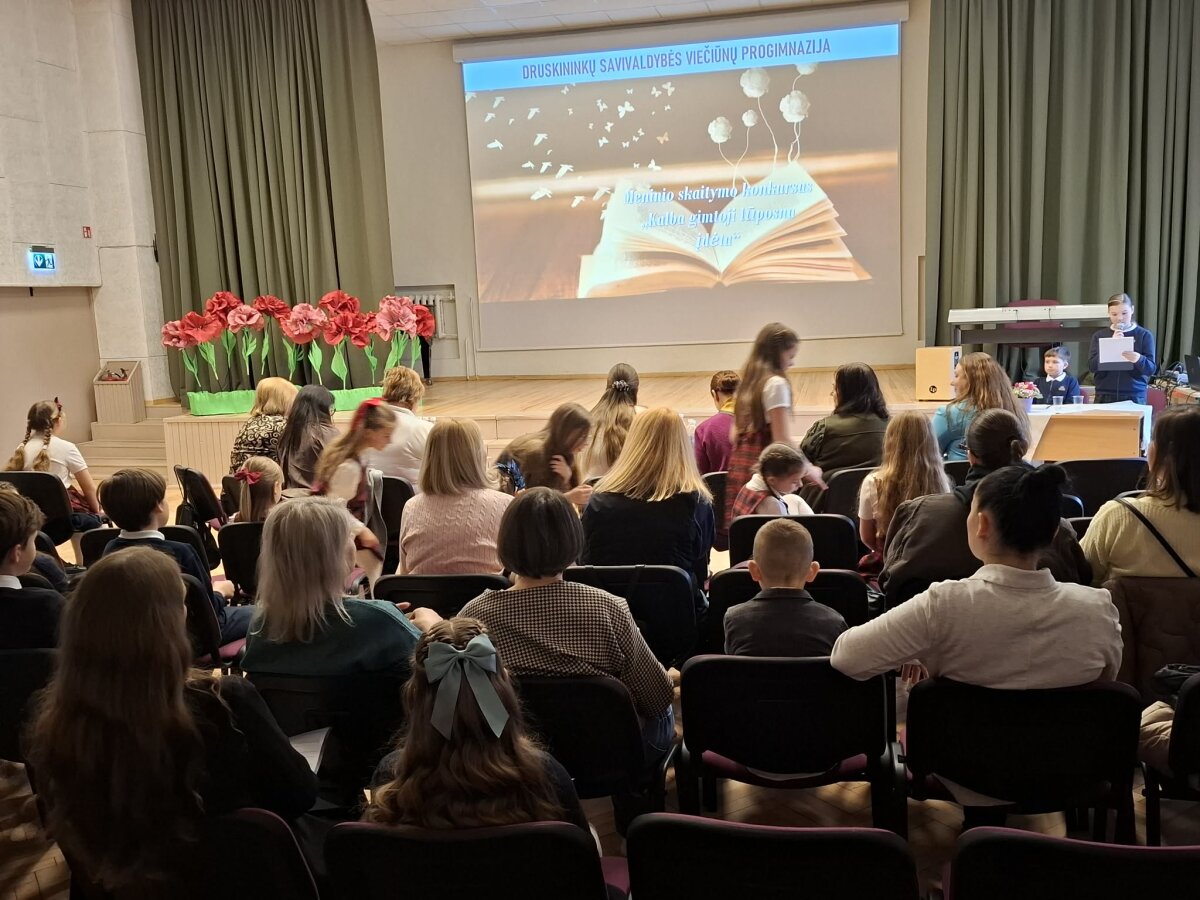 Kovo 26 dieną Viečiūnų progimnazijoje vyko Druskininkų savivaldybės priešmokyklinio ugdymo grupių ugdytinių ir bendrojo ugdymo mokyklų 1–4 klasių mokinių meninio skaitymo konkursas „Kalba gimtoji lūposna įdėta“. Konkurse dalyvavo 30 Druskininkų savivaldybės priešmokyklinio ugdymo ir pradinių klasių mokinių iš „Saulės“ pagrindinės mokyklos, „Atgimimo“ mokyklos bei Viečiūnų ir Leipalingio progimnazijų.