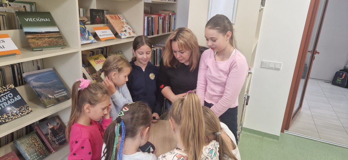 Projekto pristatymas vyko netradicinėje aplinkoje – Druskininkų savivaldybės viešojoje bibliotekoje, Viečiūnų padalinyje. Dėkojame vyresniajai bibliotekininkei Nijolei Čaplikienei už svetingumą. Pamokos kitose erdvėse mokiniams suteikė daug džiaugsmo ir gerų emocijų.