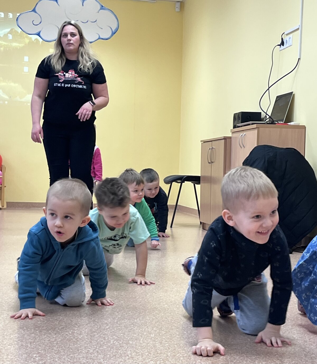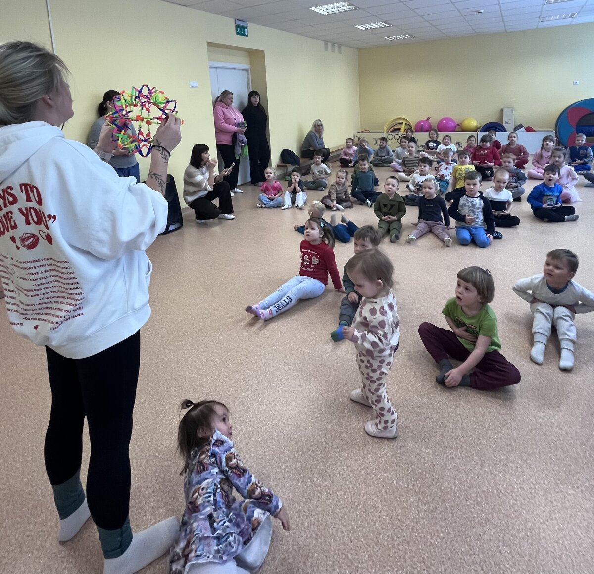 Kiekvieną mėnesio pirmadienį vaikai dalyvavo jogos užsiėmimuose. Juos vedė ugdytinės Godos mama, kineziterapijos specialistė Greta Bagdonavičienė. Mažieji mokėsi taisyklingai kvėpuoti, atliko atsipalaidavimo pratimus, lavino kūną, protą ir emocijas žaismingų veiklų metu.