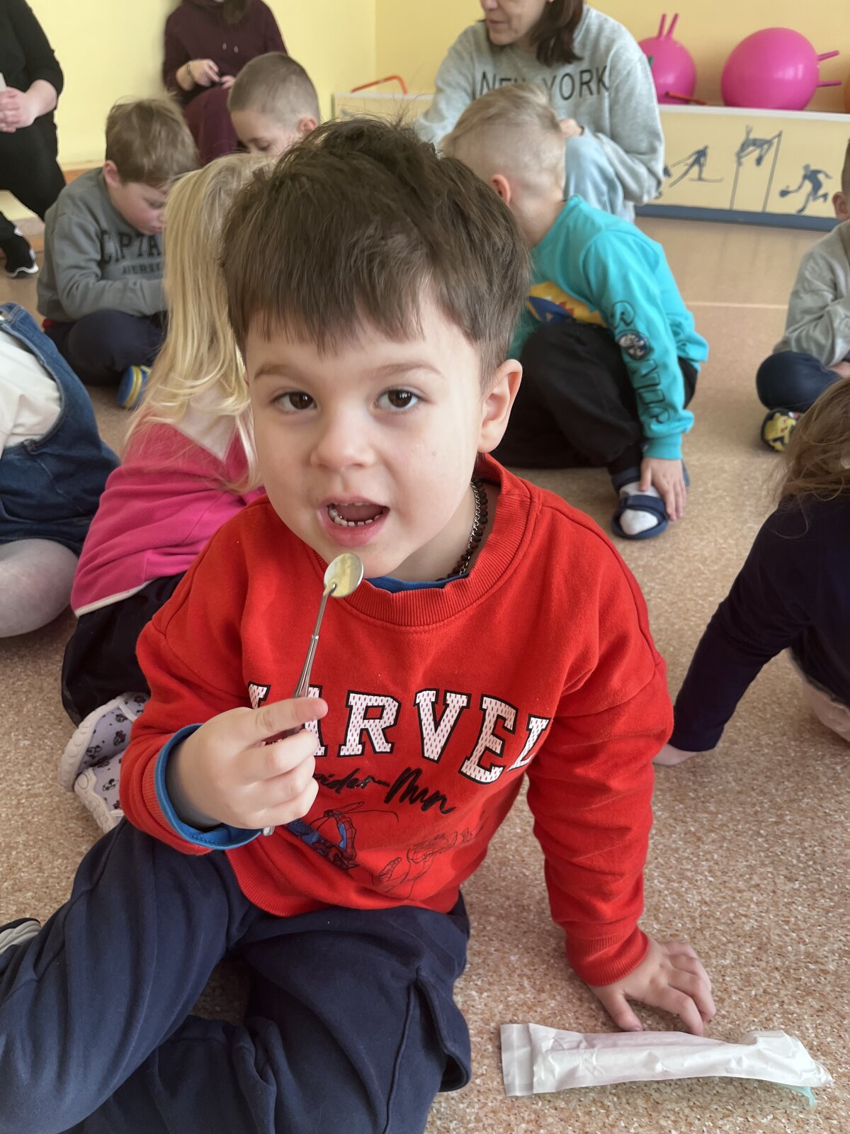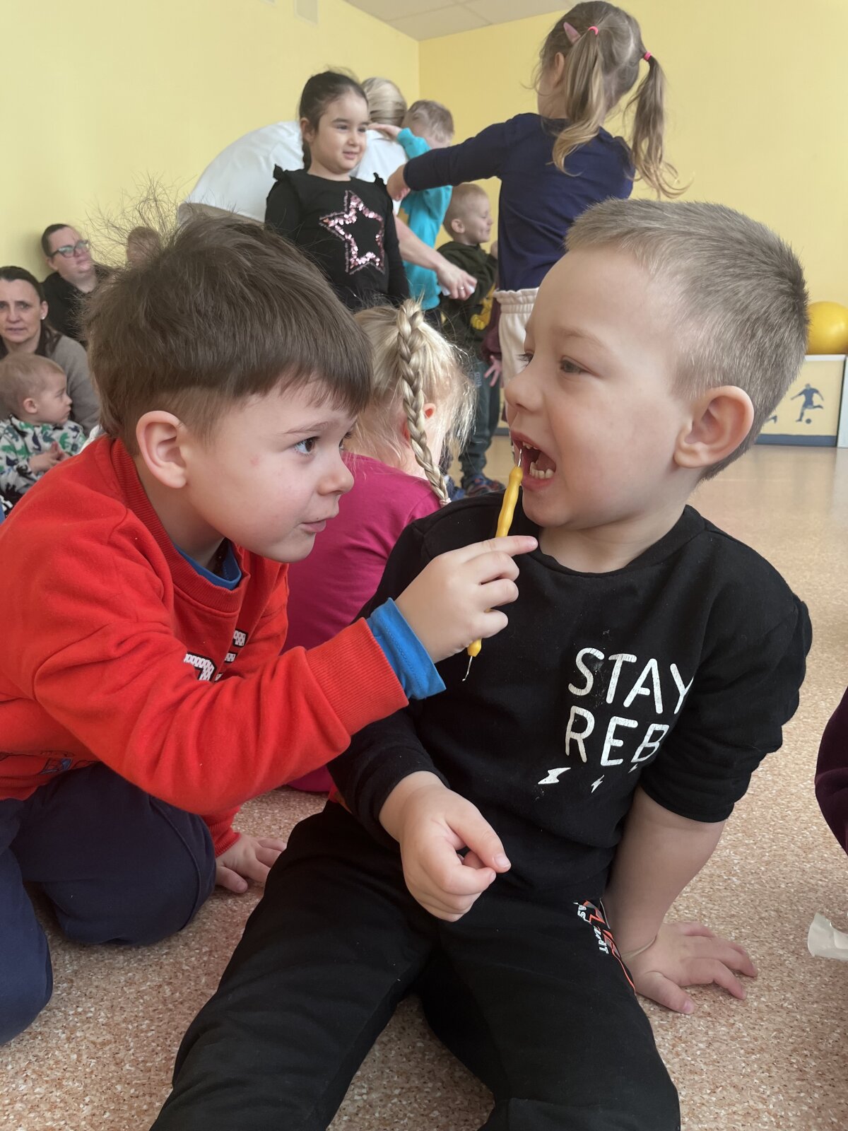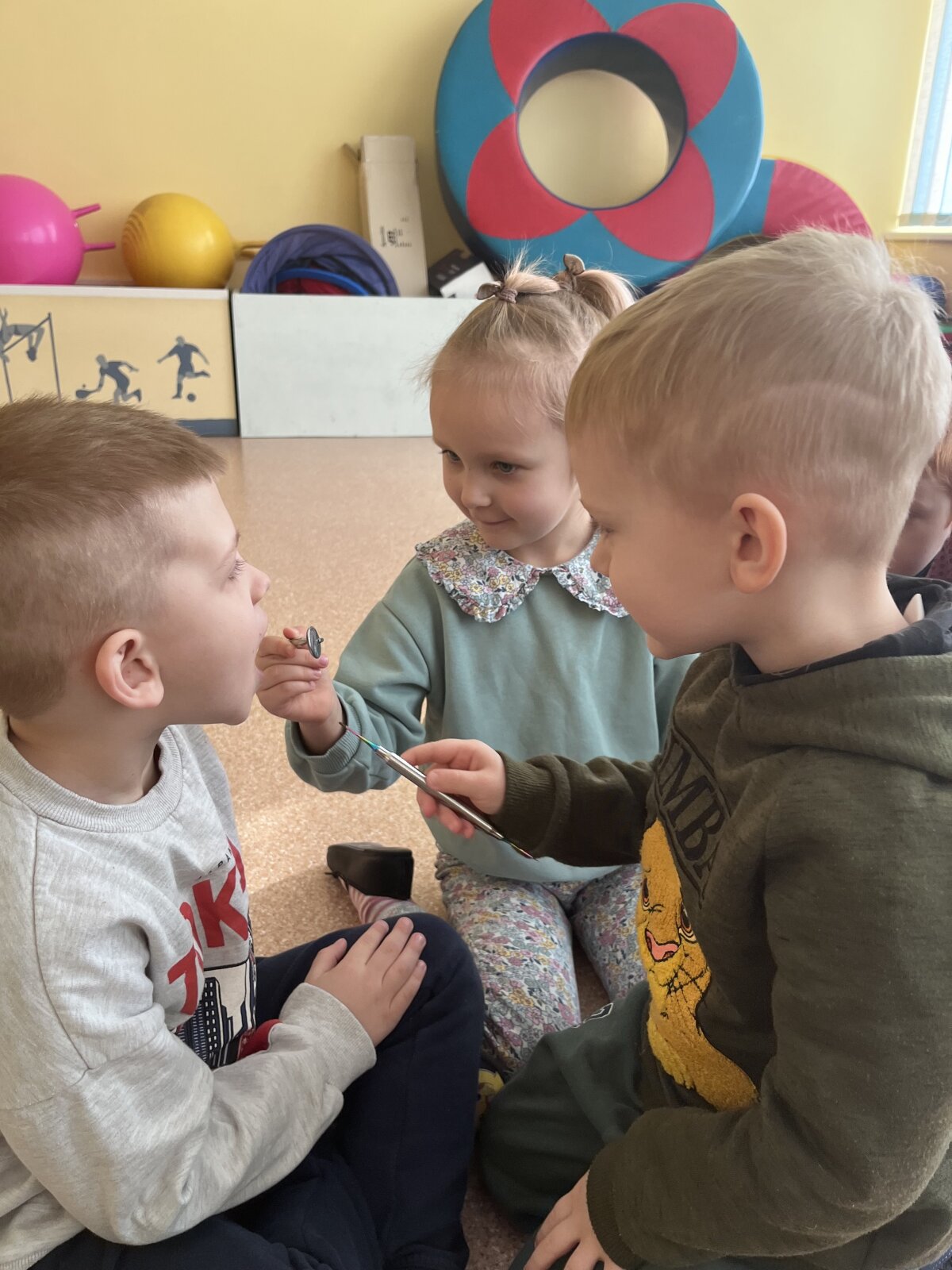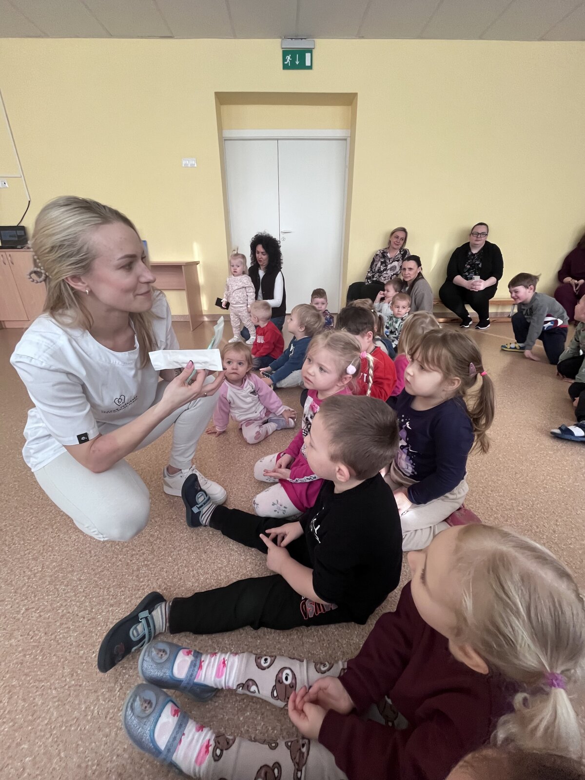 Vieną antradienio rytą vaikai susitiko su Nojaus mama Simona Karolina Dumbliauskiene, odontologo asistente. Ji žaismingai pasakojo apie dantukų higieną, kartu su vaikais aptarė „draugiškus“ ir „nedraugiškus“ produktus dantukams, pademonstravo odontologo naudojamus įrankius.