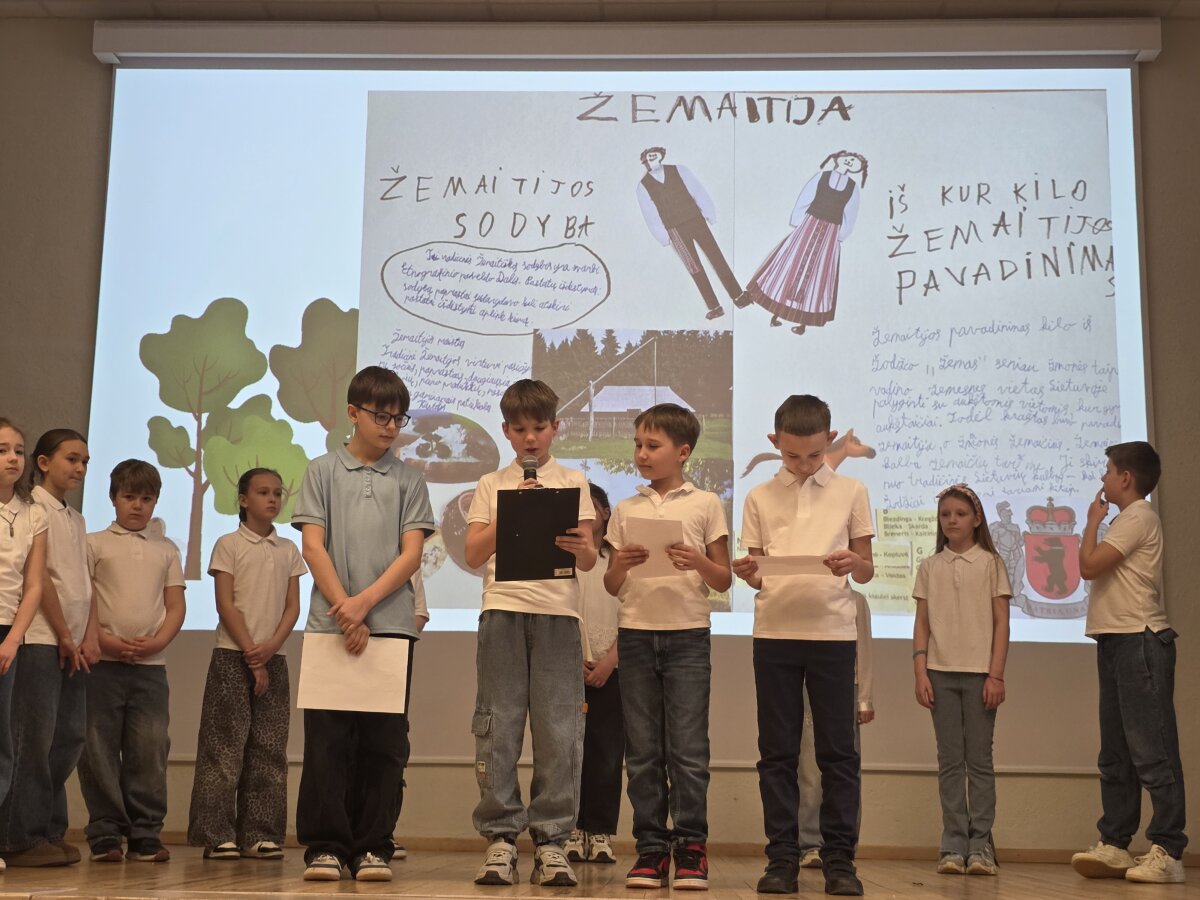 Visą kovo mėnesį 3 klasės mokiniai kartu su mokytojomis Kristina ir Sandra vykdė integruotą etnografinį projektą „Tėviškės keliu“. Projekto veiklų metu mokiniai tyrinėjo mūsų šalies istorinius regionus: Aukštaitiją, Dzūkiją, Suvalkiją, Žemaitiją ir Mažąją Lietuvą. Trečiokai kūrė informatyvius plakatus, mokėsi tarmiškai kalbėti, dainuoti, šokti ir groti lietuvių liaudies dainas bei tradicinius šokius, o kovo 25 dieną į projekto pristatymą pakvietė visus pradinukus.