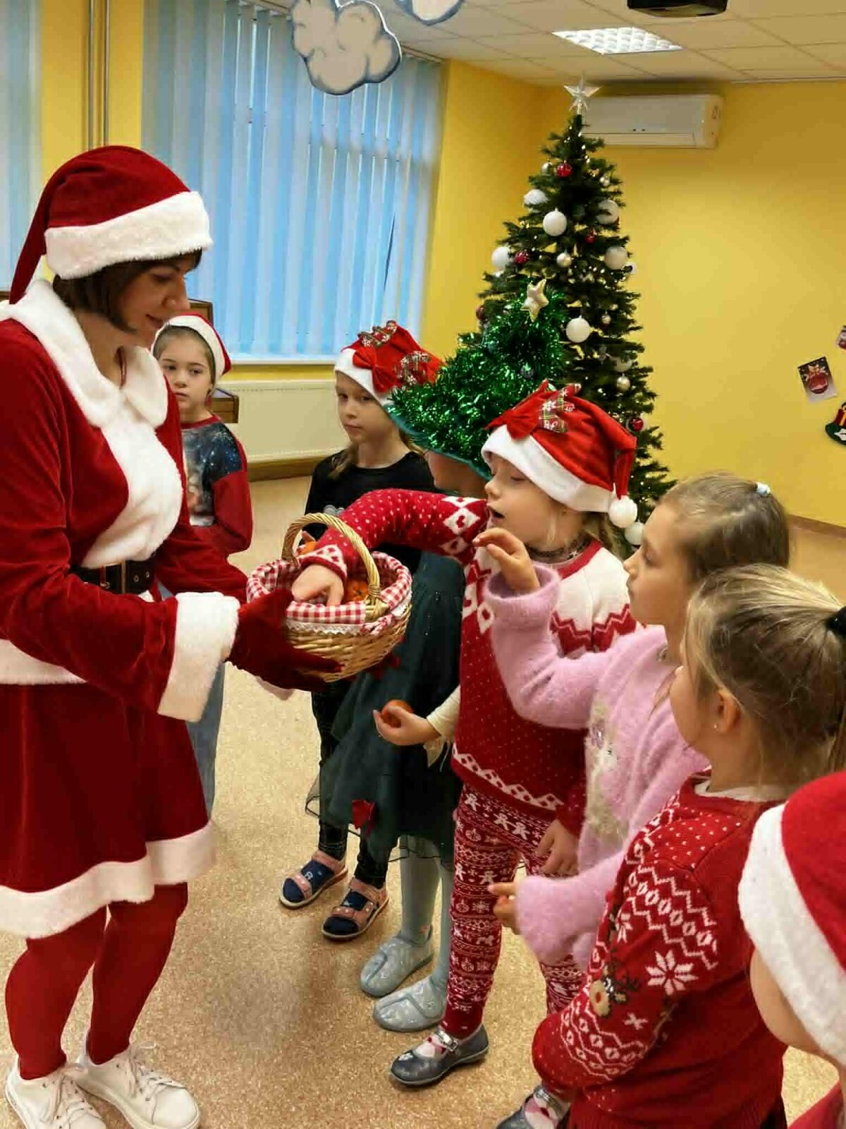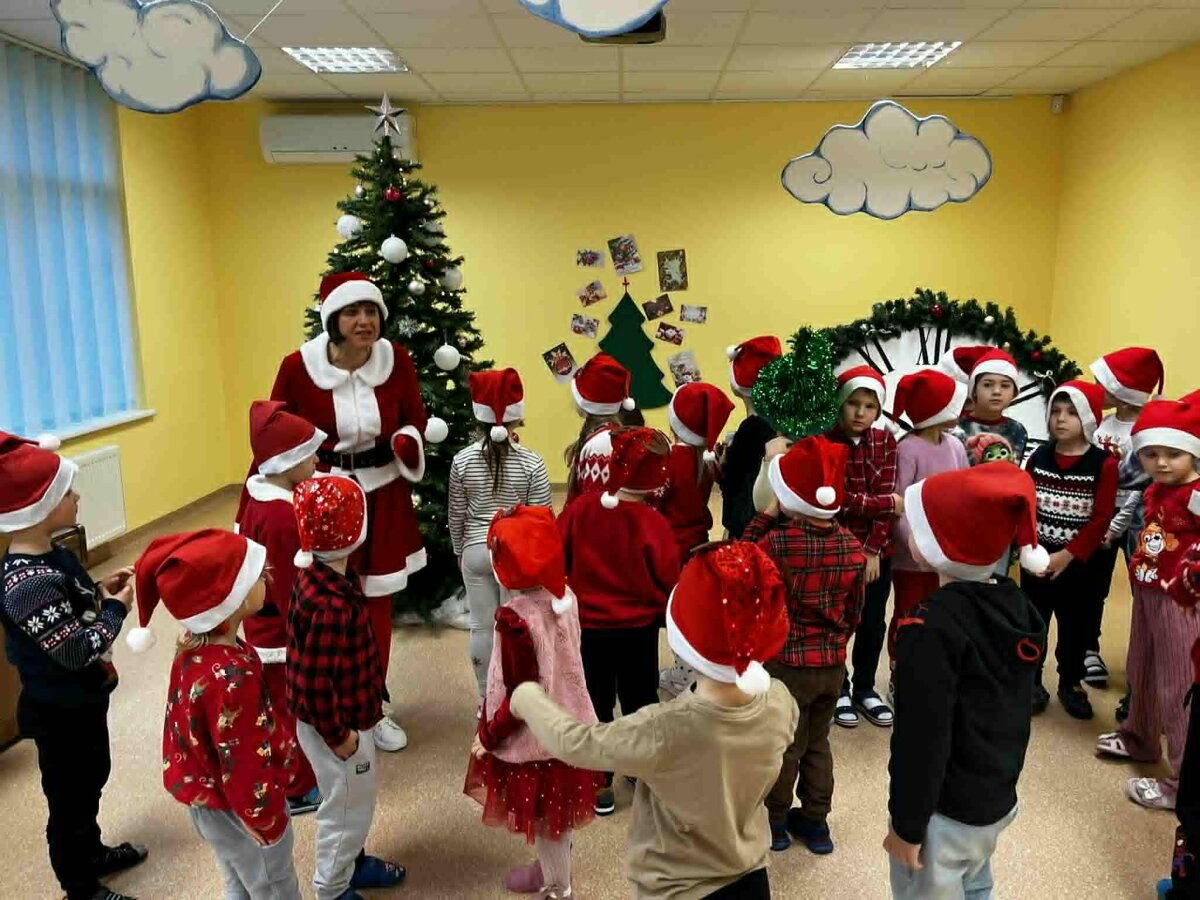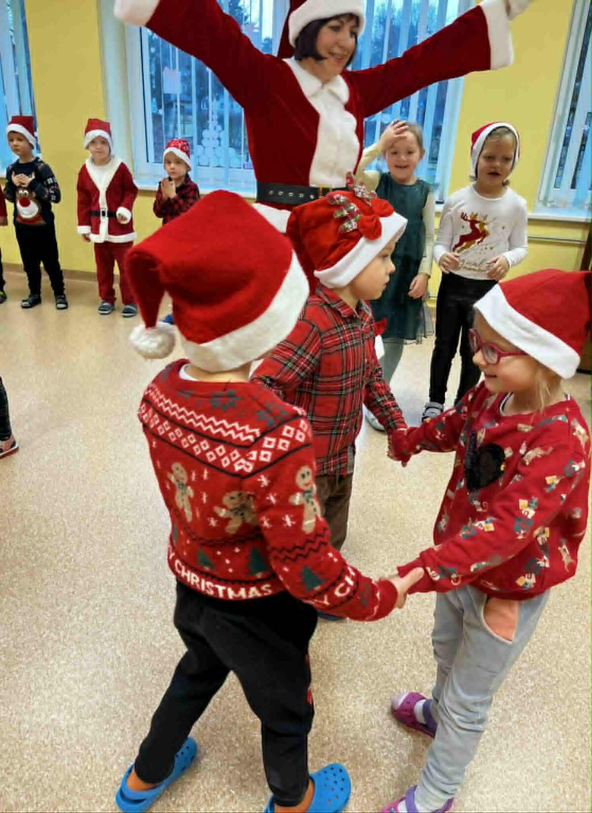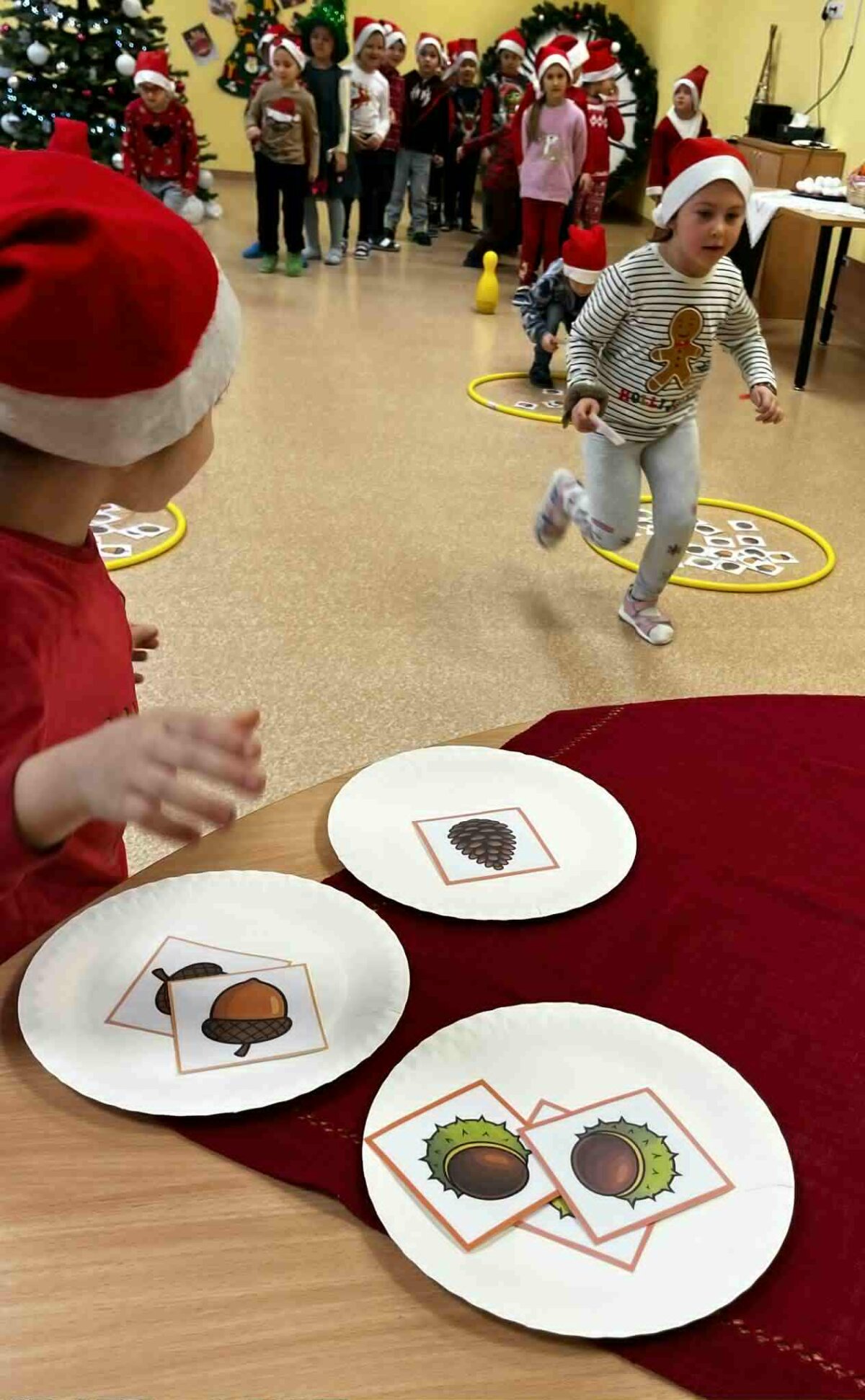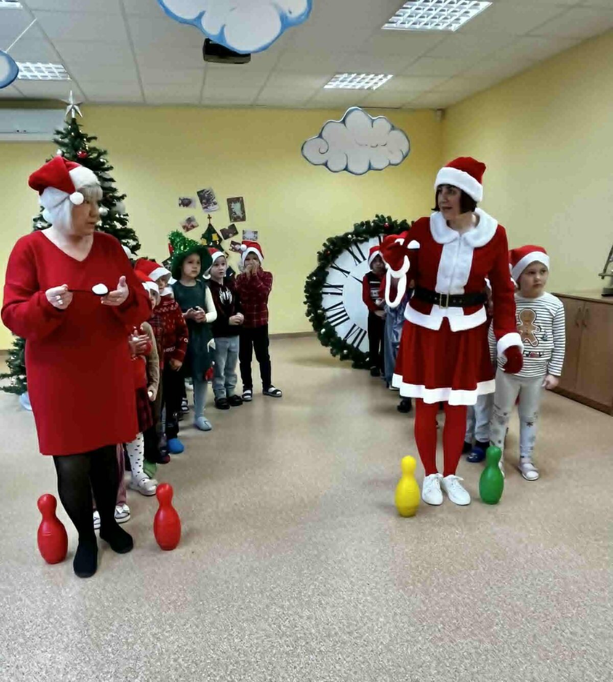 Mažieji nykštukai puošė žaliaskarę eglutę, mankštinosi ir atliko įvairias aktyvias užduotis. Vaikai žaidė, varžėsi estafetėse, šoko ir dainavo – jų juokas ir gera nuotaika pripildė salę kalėdinės šilumos.