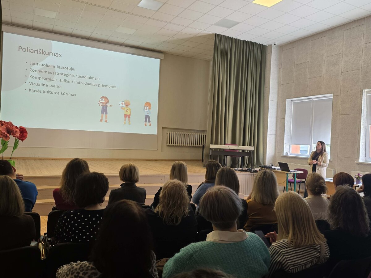 Balandžio 1 d. sulaukėme svečių iš Jonavos Justino Vareikio progimnazijos. Šis vizitas tapo puikia proga dalintis gerąja patirtimi, stiprinti profesinius ryšius bei aptarti šiuolaikinius ugdymo metodus. Viešnagės metu svečiai lankėsi progimnazijos edukaciniame centre, ikimokyklinio ugdymo skyriuje „Linelis“ ir apžiūrėjo mokyklos erdves. Mokytojams buvo pristatytos inovatyvios ugdymo priemonės ir aplinkos, skatinančios mokinių įsitraukimą bei patyriminį mokymąsi. Didelio susidomėjimo sulaukė galimybė praktiškai išbandyti „Photon“ robotukus, kurie ugdymo procese padeda lavinti mokinių loginį mąstymą, kūrybiškumą ir problemų sprendimo gebėjimus. Taip pat buvo pristatyta sensorinė erdvė, skirta vaikų pojūčiams lavinti, emocinei gerovei stiprinti ir individualiems poreikiams atliepti. Apžiūrėję progimnazijos erdves mokytojai rinkosi mokyklos aktų salėje, kurioje pradinio ugdymo vyresnioji mokytoja Gintarė Urbanavičienė dalijosi savo patirtimi apie Druskininkų švietimo įstaigų bendradarbiavimo galimybes ir projektinių veiklų organizavimą laboratorijose. Lietuvių kalbos ir literatūros mokytoja metodininkė Sigita Muzikevičienė pristatė mokinių darbus ir pasidalijo savo praktinėmis įžvalgomis apie tarpdalykinę integraciją ir kūrybiškumo ugdymą projektinėje ir popamokinėje veikloje. Psichologo asistentė Rūta Grigoraitė papasakojo, kaip pojūčių pažinimas gali pagerinti ugdymo kokybę. Aptarti praktiniai pavyzdžiai atskleidė, kaip kryptingas bendradarbiavimas gali prisidėti prie ugdymo kokybės gerinimo ir inovacijų diegimo. Vizitas vyko šiltoje ir konstruktyvioje atmosferoje, o abiejų mokyklų bendruomenės išreiškė norą tęsti bendradarbiavimą ir ateityje. Tokie susitikimai ne tik praturtina pedagoginę patirtį, bet ir kuria tvirtą pagrindą bendriems projektams bei iniciatyvoms.