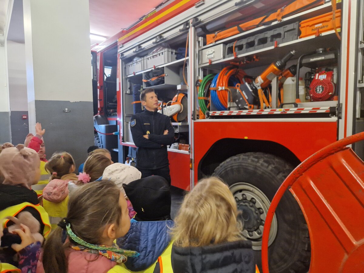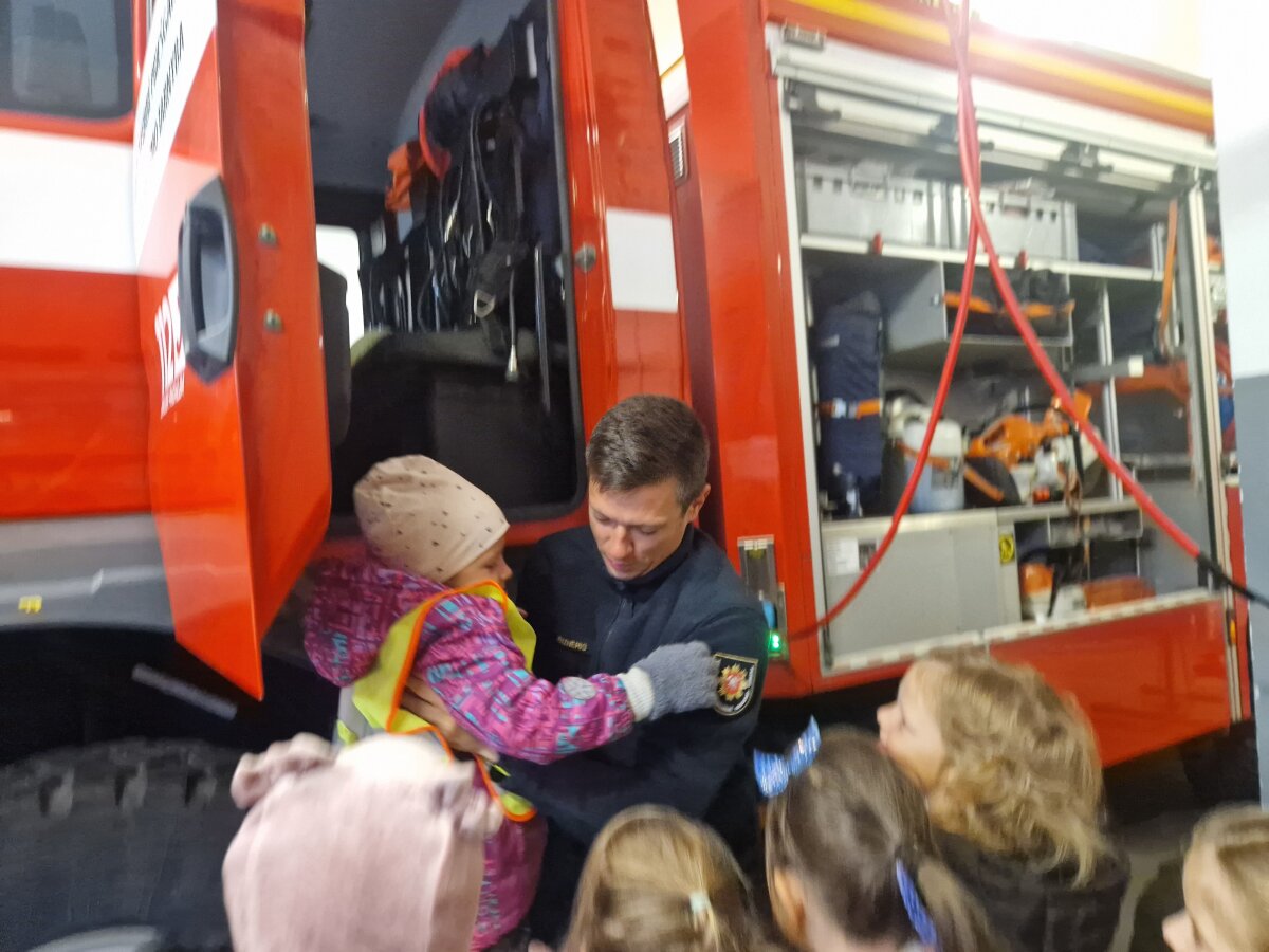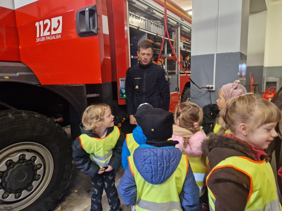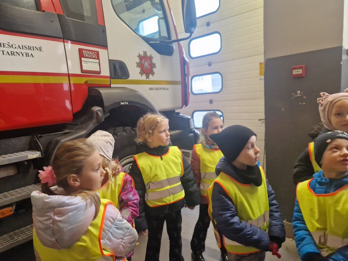 Priešmokyklinio ugdymo grupės „Žingsniai“ vaikai vyko į įdomią edukacinę išvyką – lankėsi Druskininkų priešgaisrinėje gelbėjimo tarnyboje. Priešmokyklinukai turėjo išskirtinę galimybę iš arti susipažinti su ugniagesių gelbėtojų profesija. Vaikai sužinojo, kaip dirba šie drąsūs žmonės, kokia svarbi jų misija padėti ir gelbėti, išgirdo apie kasdienius iššūkius bei veiklas.
