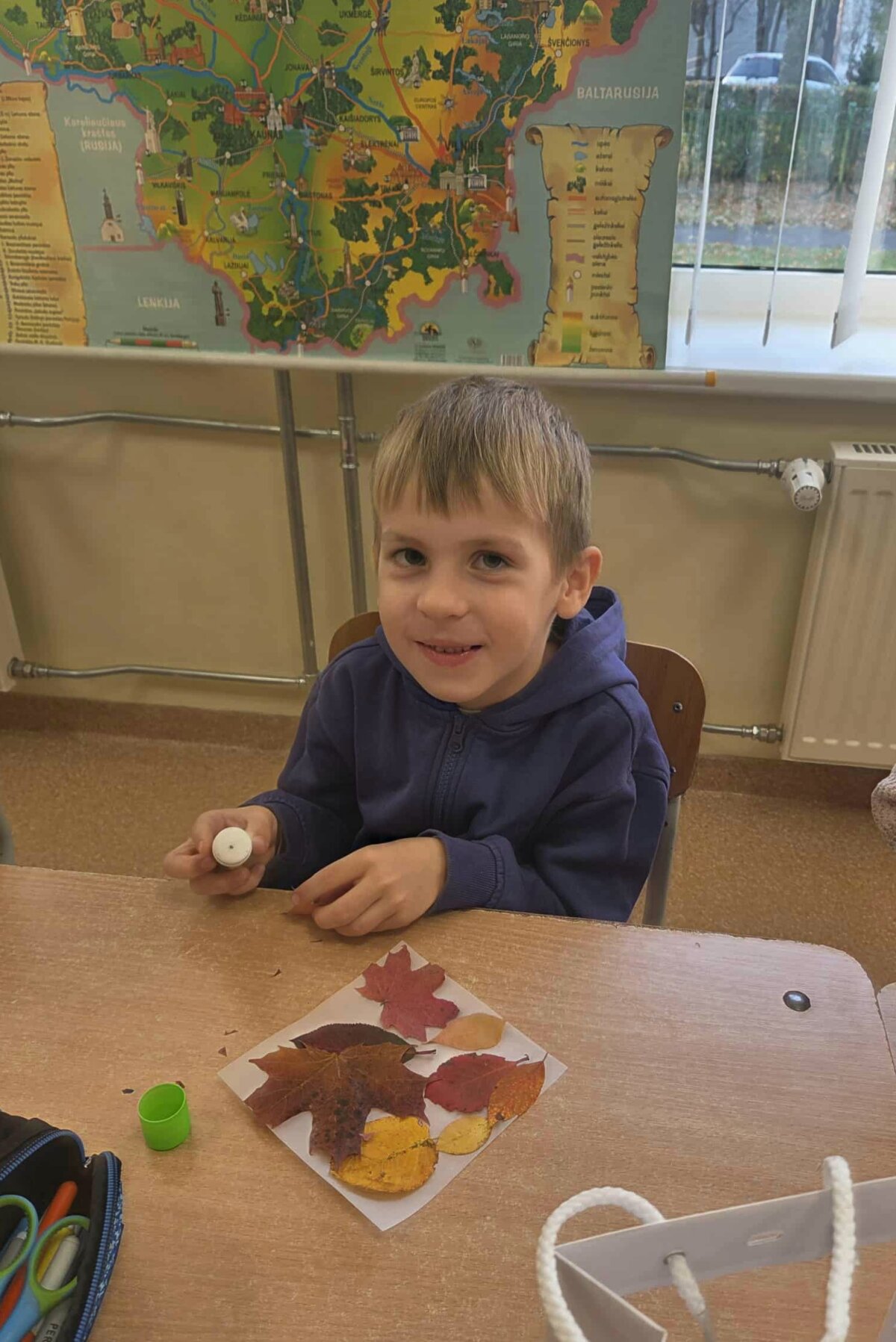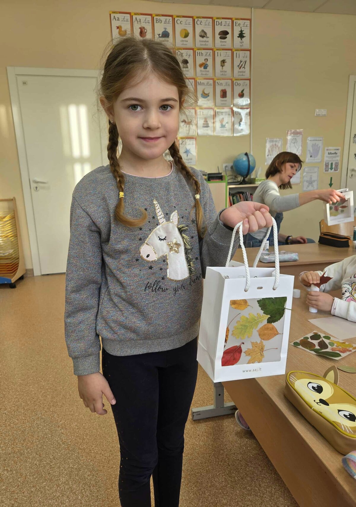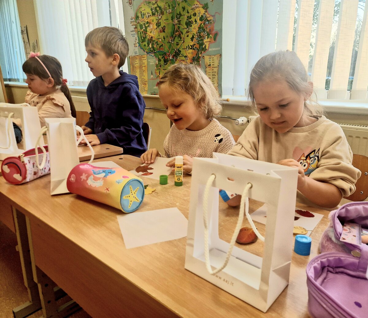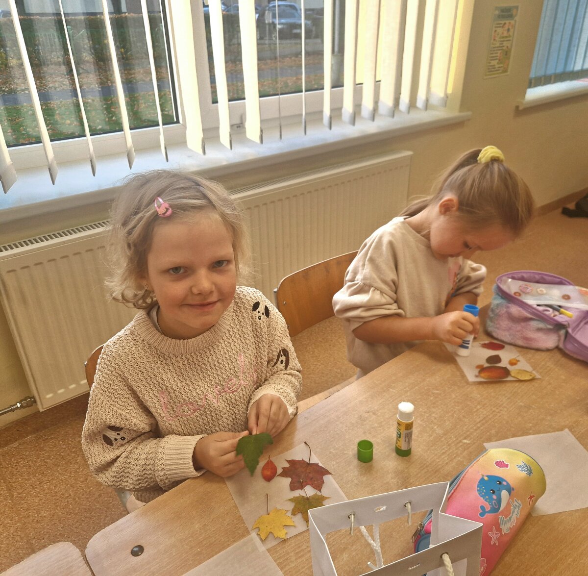 Priešmokyklinio ugdymo grupės „Žingsniai“ mokinukė Gustė kartu su mama Auste vedė šiltą ir kūrybišką pamoką apie žibintų gaminimą. Klasėje tvyrojo jauki rudens nuotaika: ant stalų gulėjo įvairiaspalviai klevų, beržų ir ąžuolų lapai, kvepėjo klijais ir džiovintais augalais. Gustė ir Austė rodė, kaip iš popierinių krepšelių ir gamtos dovanų galima sukurti tikrus šviesos stebuklus. Vaikai kruopščiai klijavo lapus, derino spalvas, o galiausiai kiekvieno rankose suspindo savitas, šiltai švytintis rudens žibintas – tarsi mažas saulės gabalėlis, nešantis šviesą į rudenėjančias dienas.