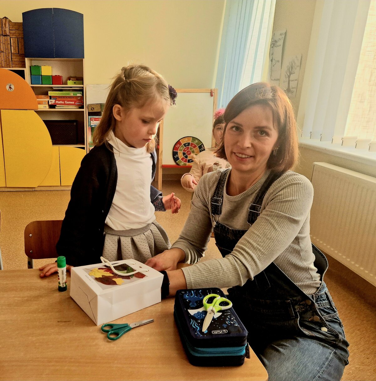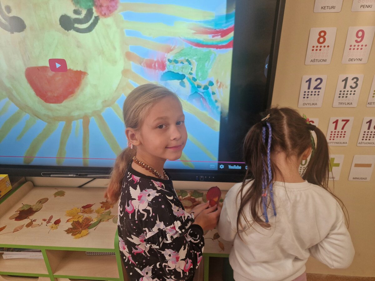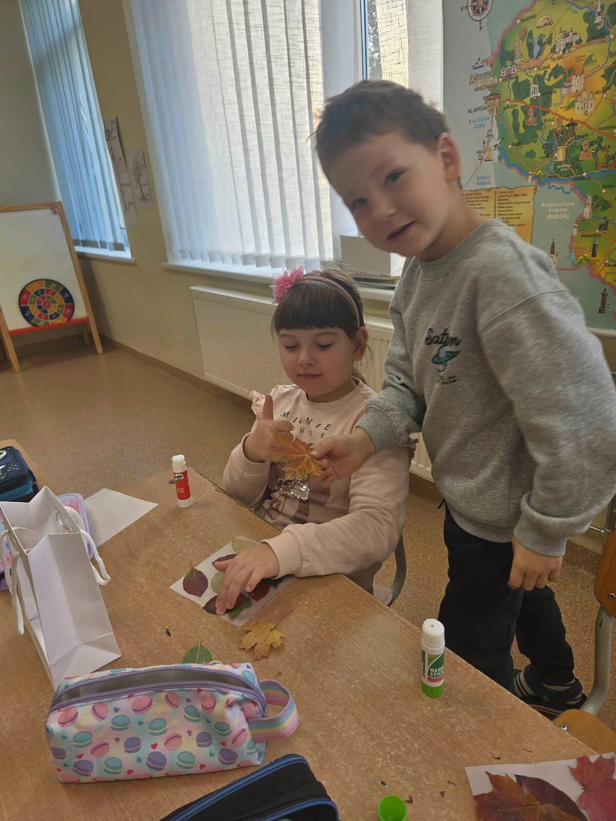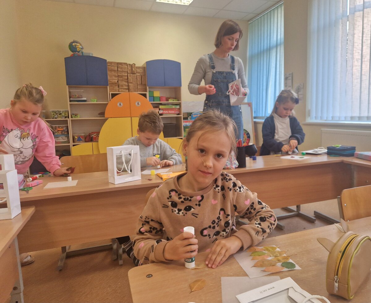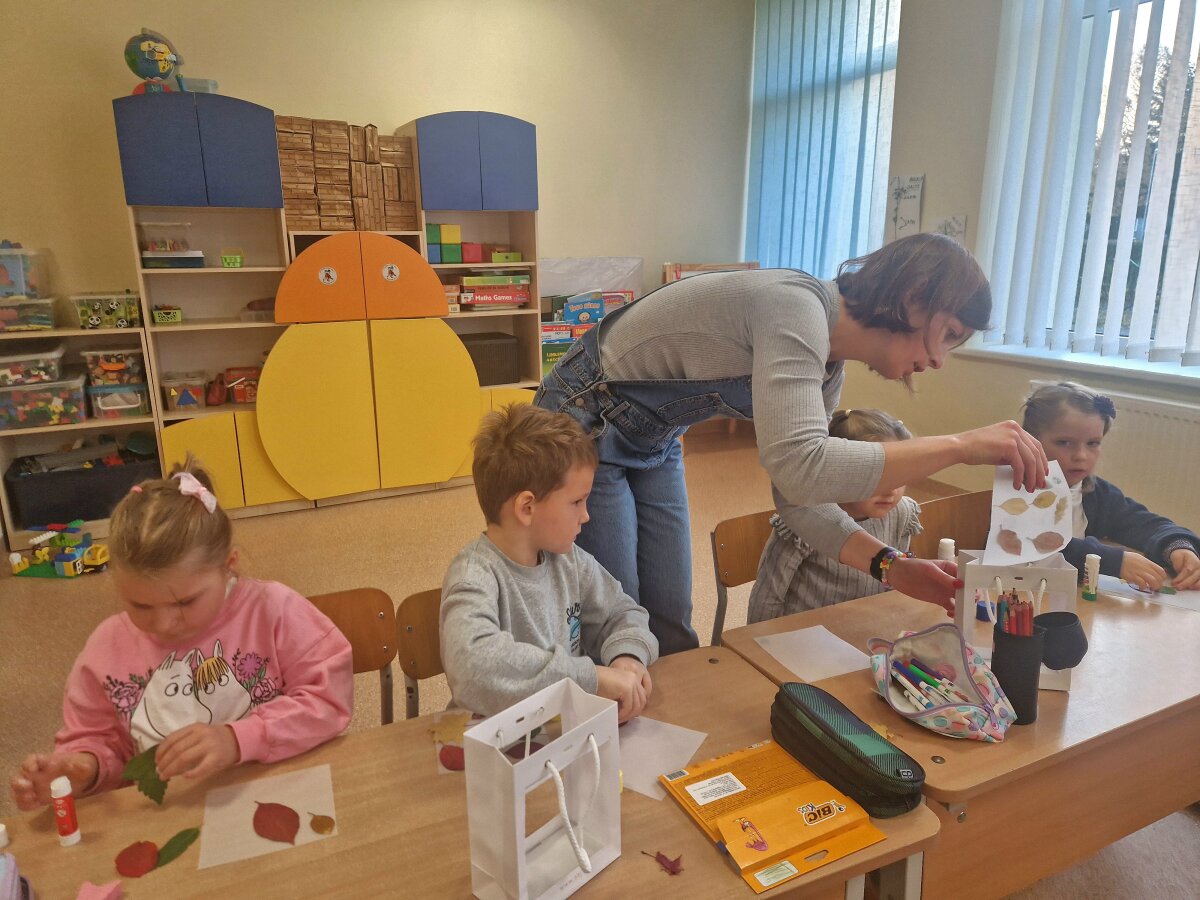 Priešmokyklinio ugdymo grupės „Žingsniai“ mokinukė Gustė kartu su mama Auste vedė šiltą ir kūrybišką pamoką apie žibintų gaminimą. Klasėje tvyrojo jauki rudens nuotaika: ant stalų gulėjo įvairiaspalviai klevų, beržų ir ąžuolų lapai, kvepėjo klijais ir džiovintais augalais. Gustė ir Austė rodė, kaip iš popierinių krepšelių ir gamtos dovanų galima sukurti tikrus šviesos stebuklus. Vaikai kruopščiai klijavo lapus, derino spalvas, o galiausiai kiekvieno rankose suspindo savitas, šiltai švytintis rudens žibintas – tarsi mažas saulės gabalėlis, nešantis šviesą į rudenėjančias dienas.