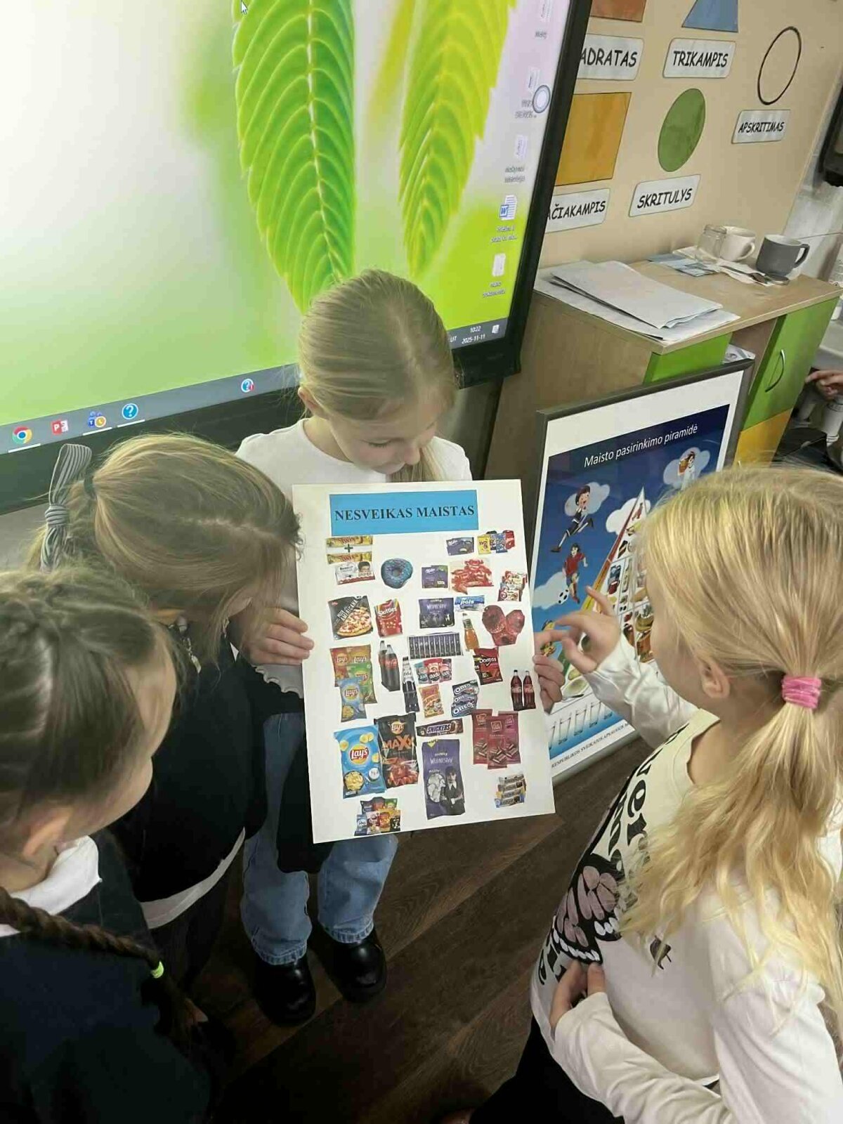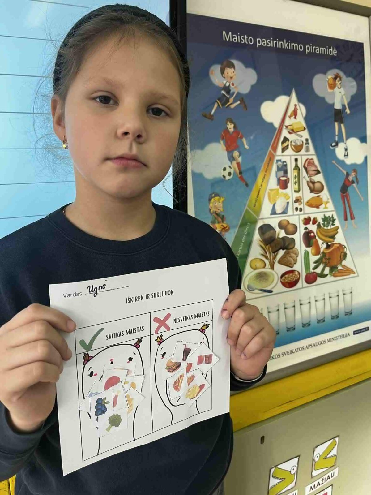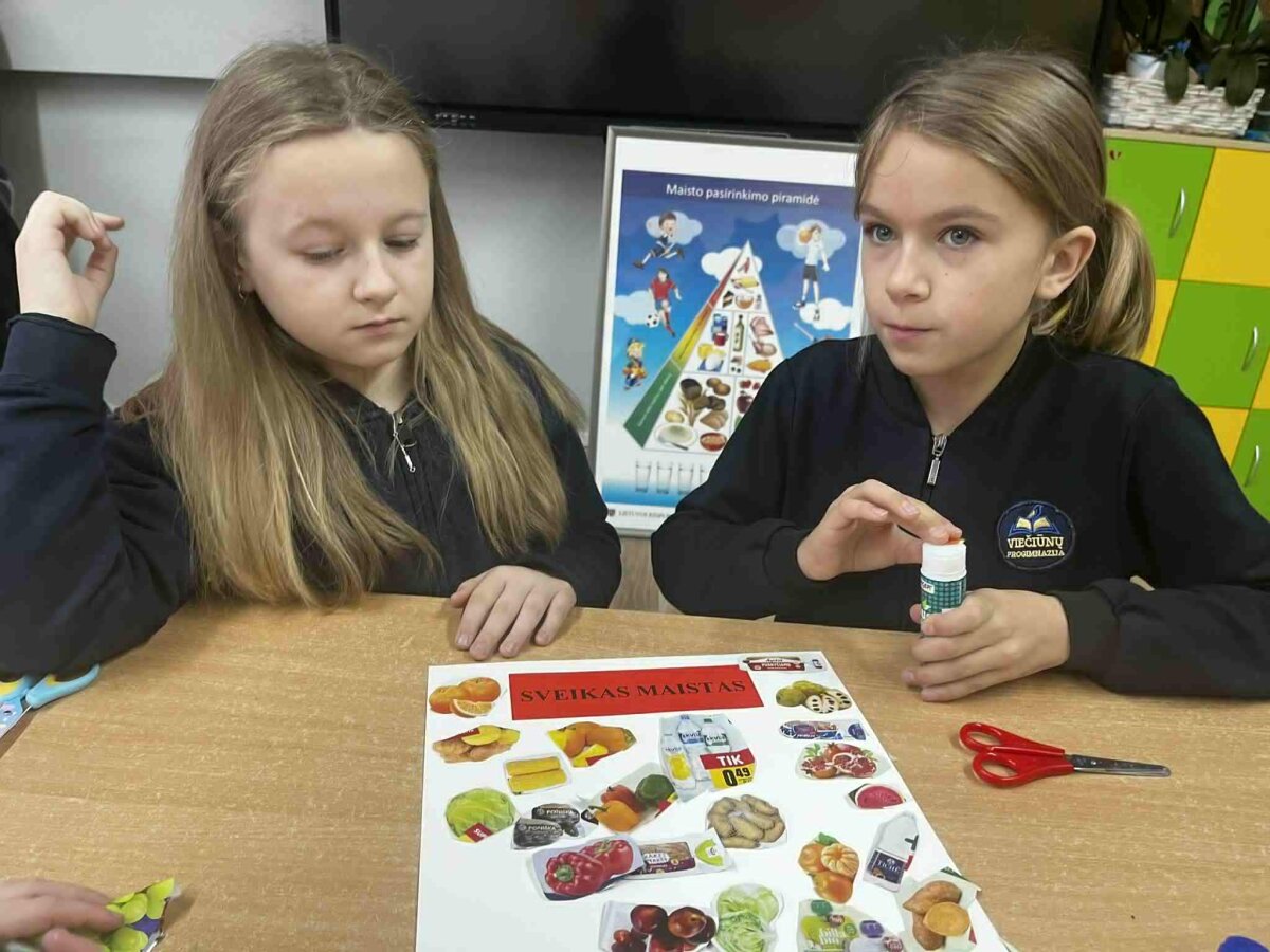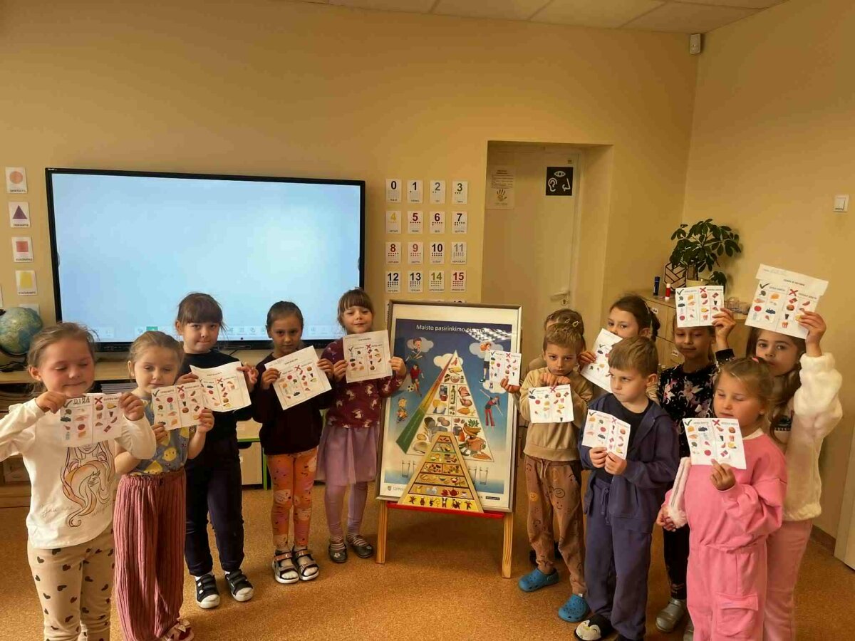 Lapkričio 11-18 dienomis visuomenės sveikatos specialistė priešmokyklinukus ir 1-4 klasių mokinius pakvietė į įdomius ir kūrybiškus edukacinius užsiėmimus „Sveikas maistas – sveikas aš“. Vaikai rinko maisto produktų iliustracijas, jas karpė, klijavo, kūrė informatyvius plakatus ir sudėliojo sveikos mitybos piramidę. Diskusijų ir komandinių veiklų metu mokiniai sužinojo, kurie produktai suteikia energijos ir padeda augti, o kuriuos reikėtų vartoti saikingai. Užsiėmimai padėjo vaikams suprasti, kad sveikos mitybos pasirinkimai yra svarbūs kasdienės sveikatos ir geros savijautos pagrindas