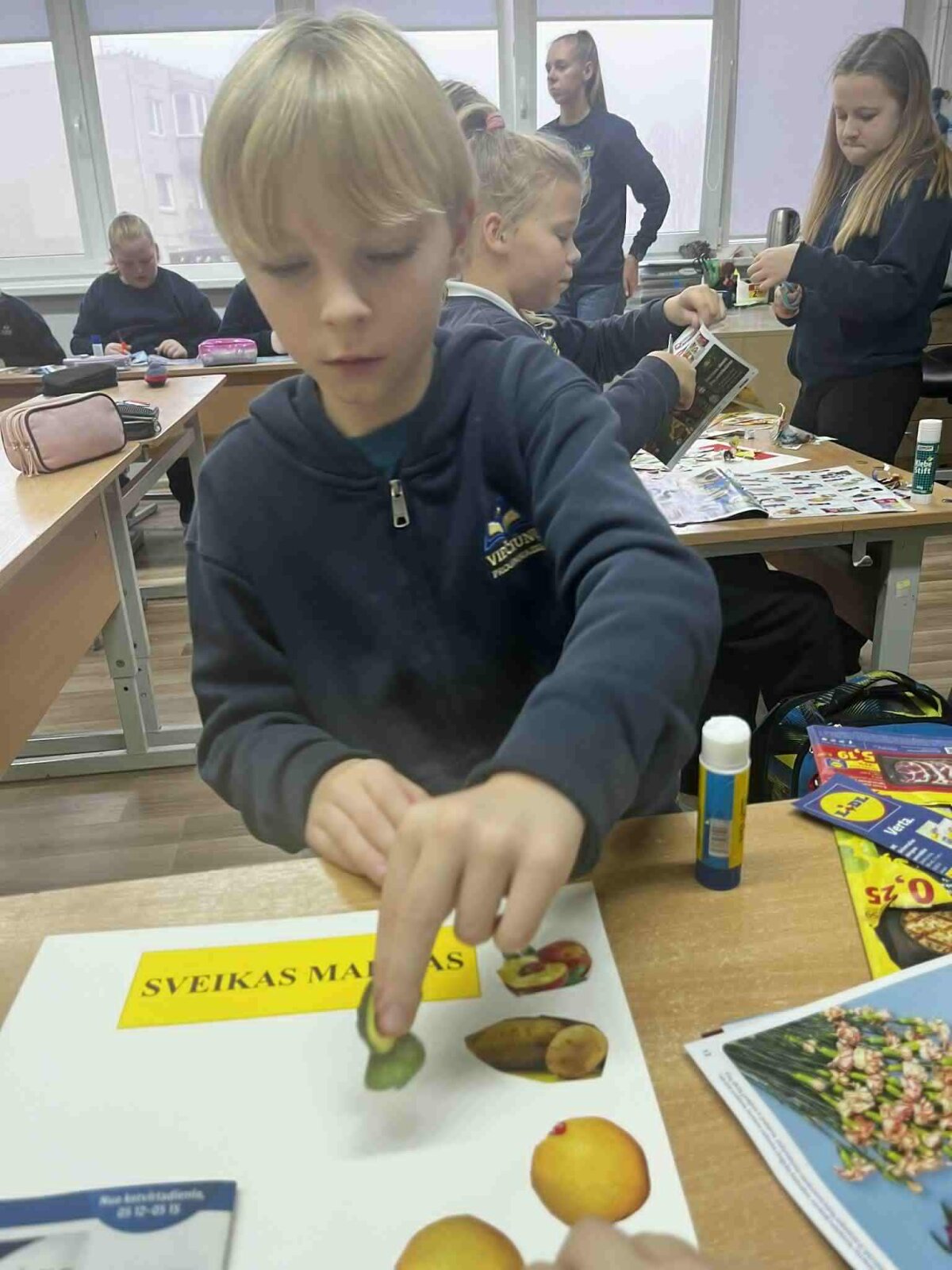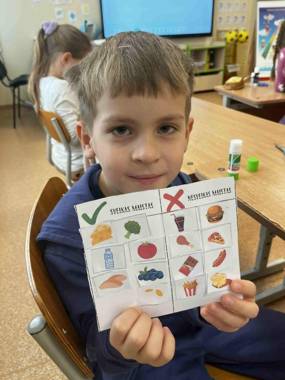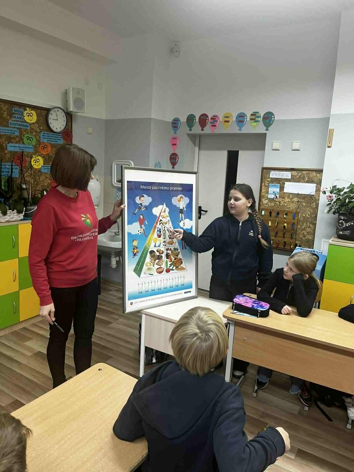 Lapkričio 11-18 dienomis visuomenės sveikatos specialistė priešmokyklinukus ir 1-4 klasių mokinius pakvietė į įdomius ir kūrybiškus edukacinius užsiėmimus „Sveikas maistas – sveikas aš“. Vaikai rinko maisto produktų iliustracijas, jas karpė, klijavo, kūrė informatyvius plakatus ir sudėliojo sveikos mitybos piramidę. Diskusijų ir komandinių veiklų metu mokiniai sužinojo, kurie produktai suteikia energijos ir padeda augti, o kuriuos reikėtų vartoti saikingai. Užsiėmimai padėjo vaikams suprasti, kad sveikos mitybos pasirinkimai yra svarbūs kasdienės sveikatos ir geros savijautos pagrindas
