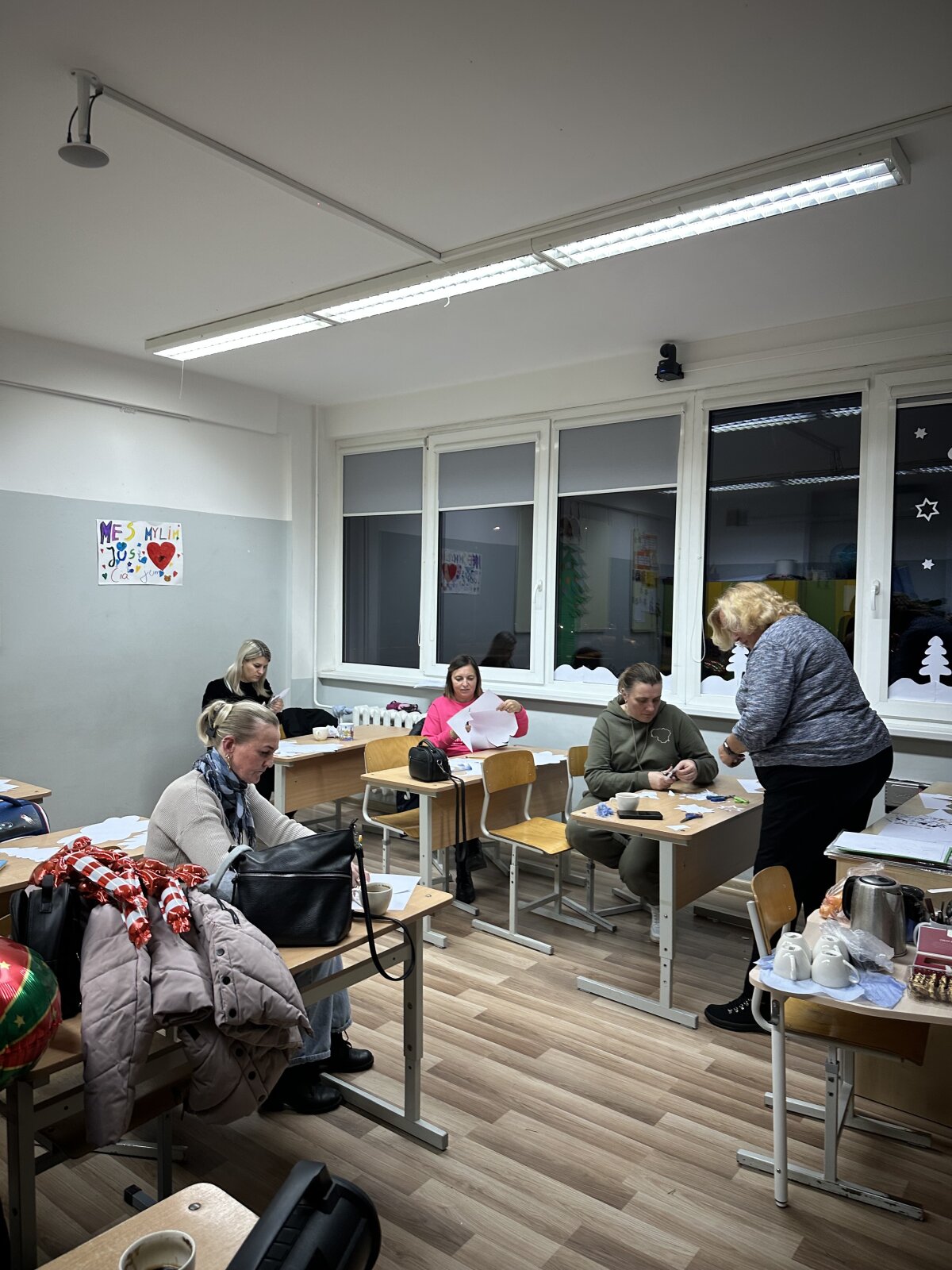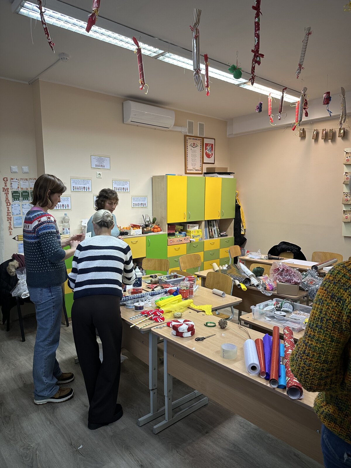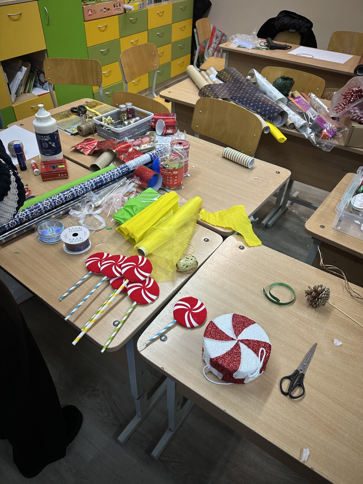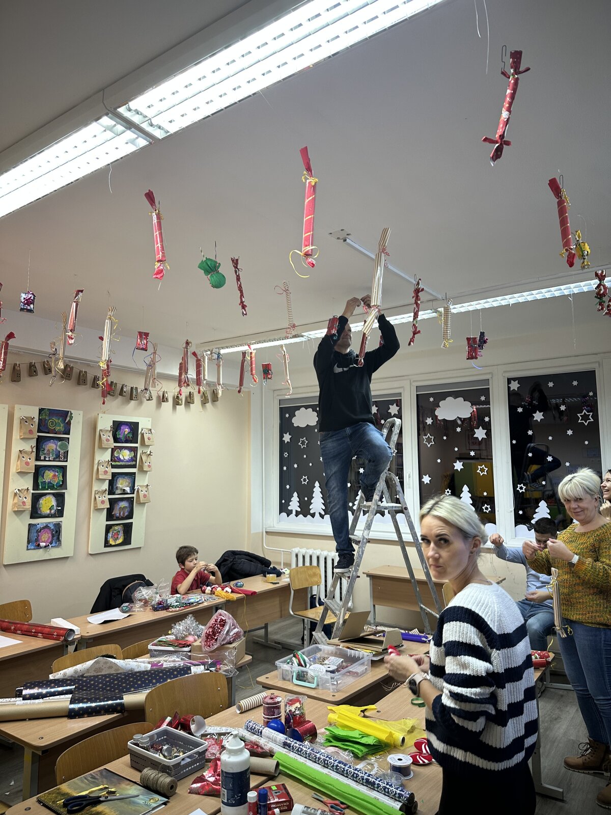 Dirbtuvėse visi kartu gamino dekoracijas, kurios vėliau papuošė klases ir mokyklos erdves, sukurdamos tikrą kalėdinę dvasią. Progimnazija šurmuliavo ir nuostabiai kvepėjo – svečiai buvo vaišinami kvepiančia kakava, sausainiais ir gardžiu morkų pyragu.