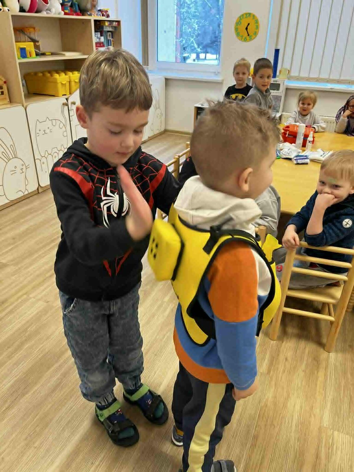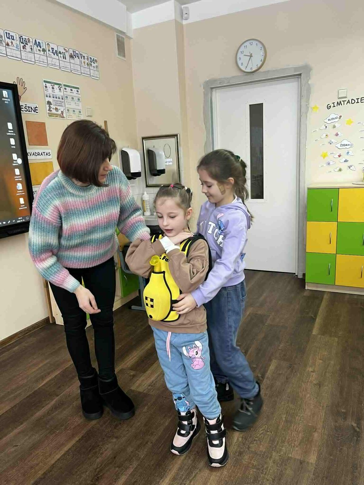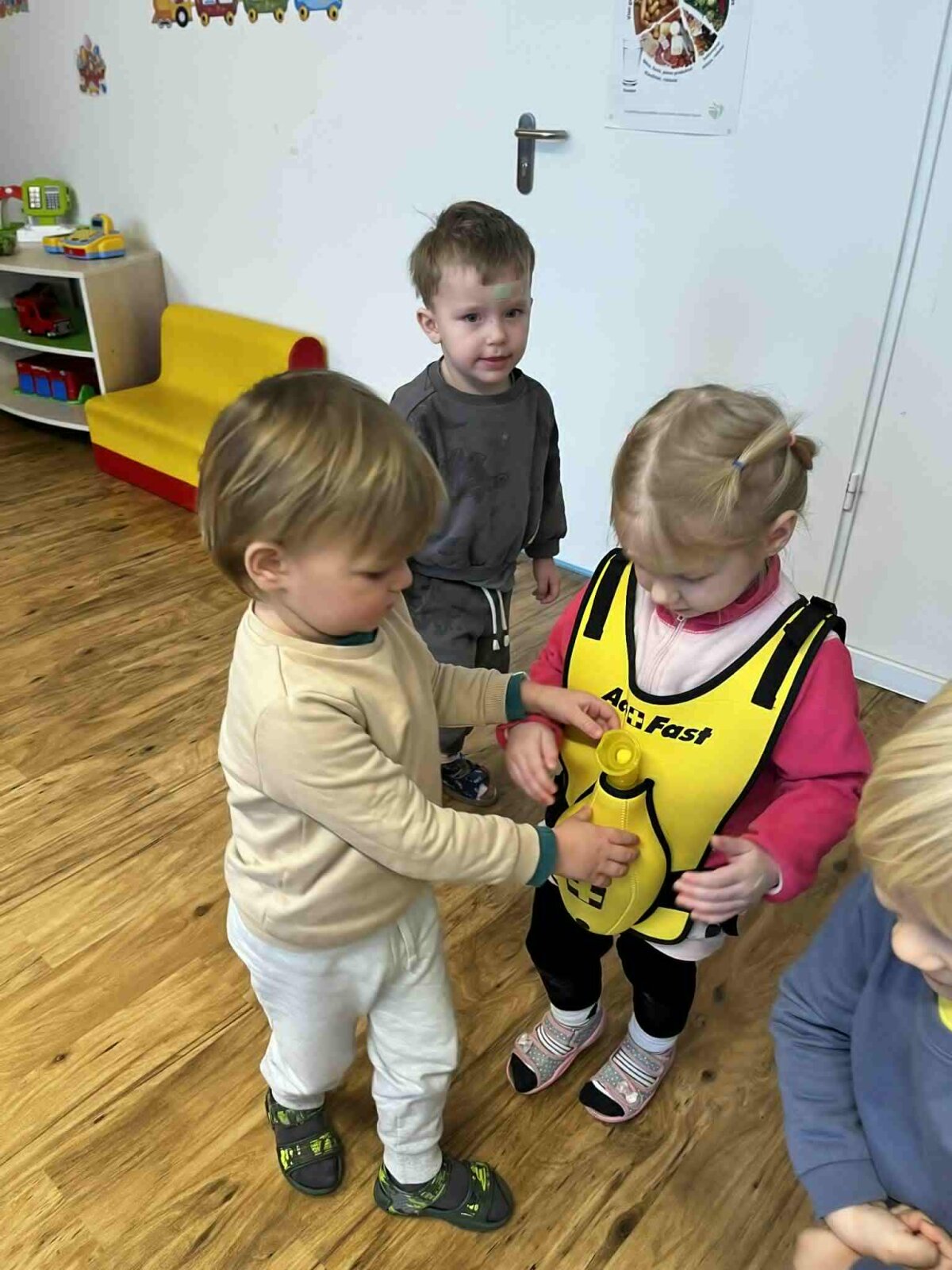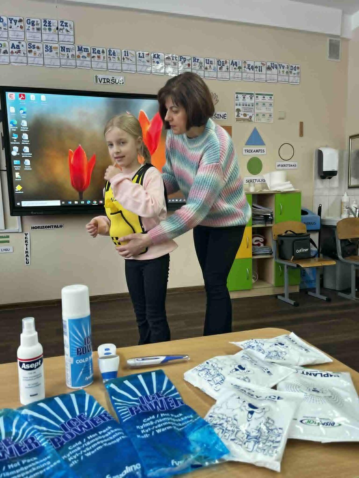 Užsiėmimuose dalyvavo „Draugystės“, „Smalsumo“, „Džiaugsmo“ grupių ugdytiniai, priešmokykliniukai bei 1 klasės mokiniai. Vaikai mokėsi užklijuoti pleistriuką, sutvarstyti sužeistą vietą, pasimatuoti kūno temperatūrą bei uždėti šalčio kompresą esant sumušimui. Taip pat išbandė užspringimo liemenę, susipažino su tarptautiniu užspringimo ženklu ir mokėsi, kaip tinkamai elgtis užspringus.