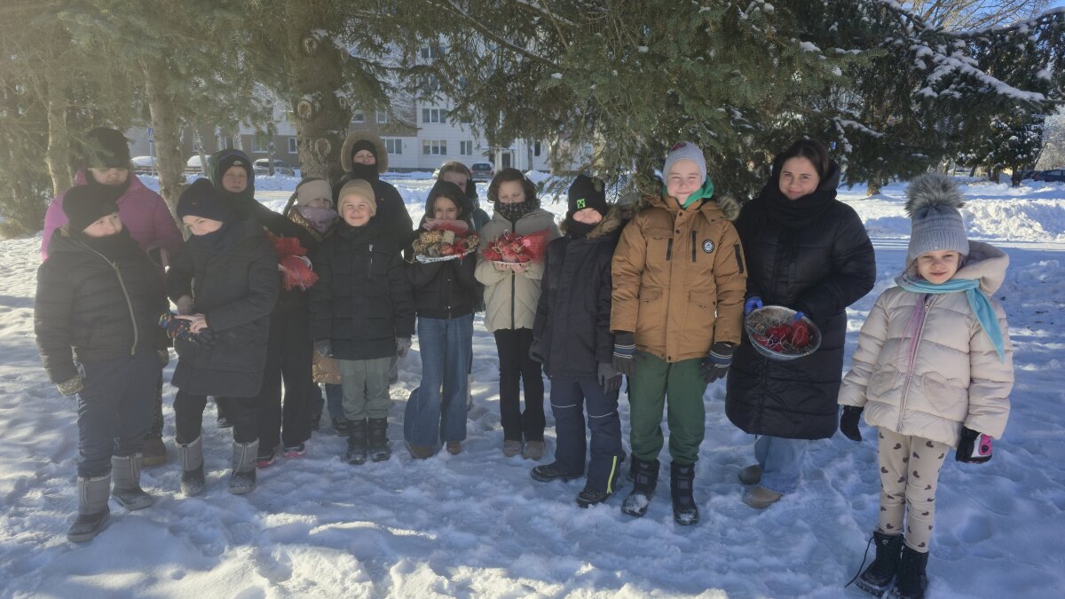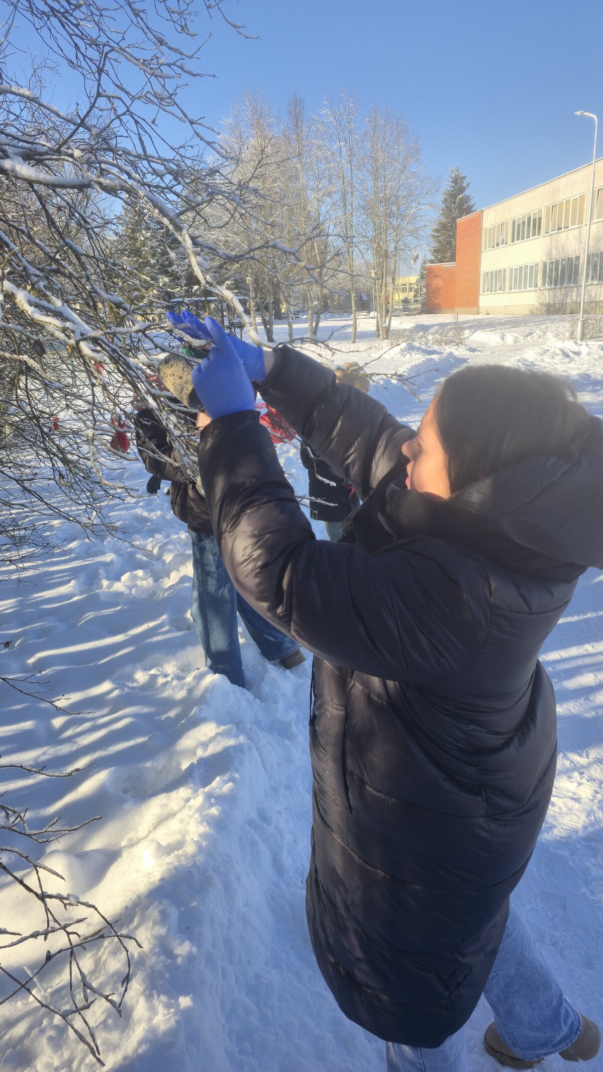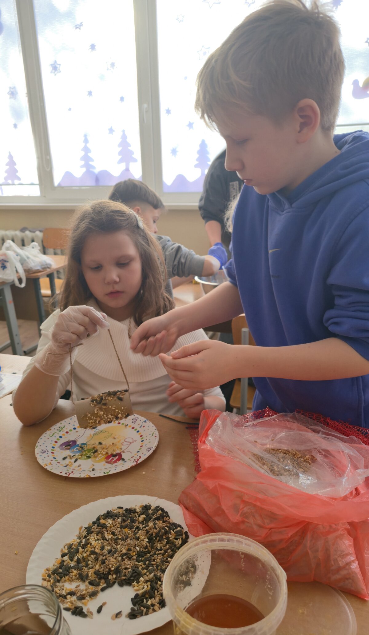 Tokią šaltą žiemą ketvirtokai nutarė pagelbėti paukšteliams, kad „baltasis badas... -