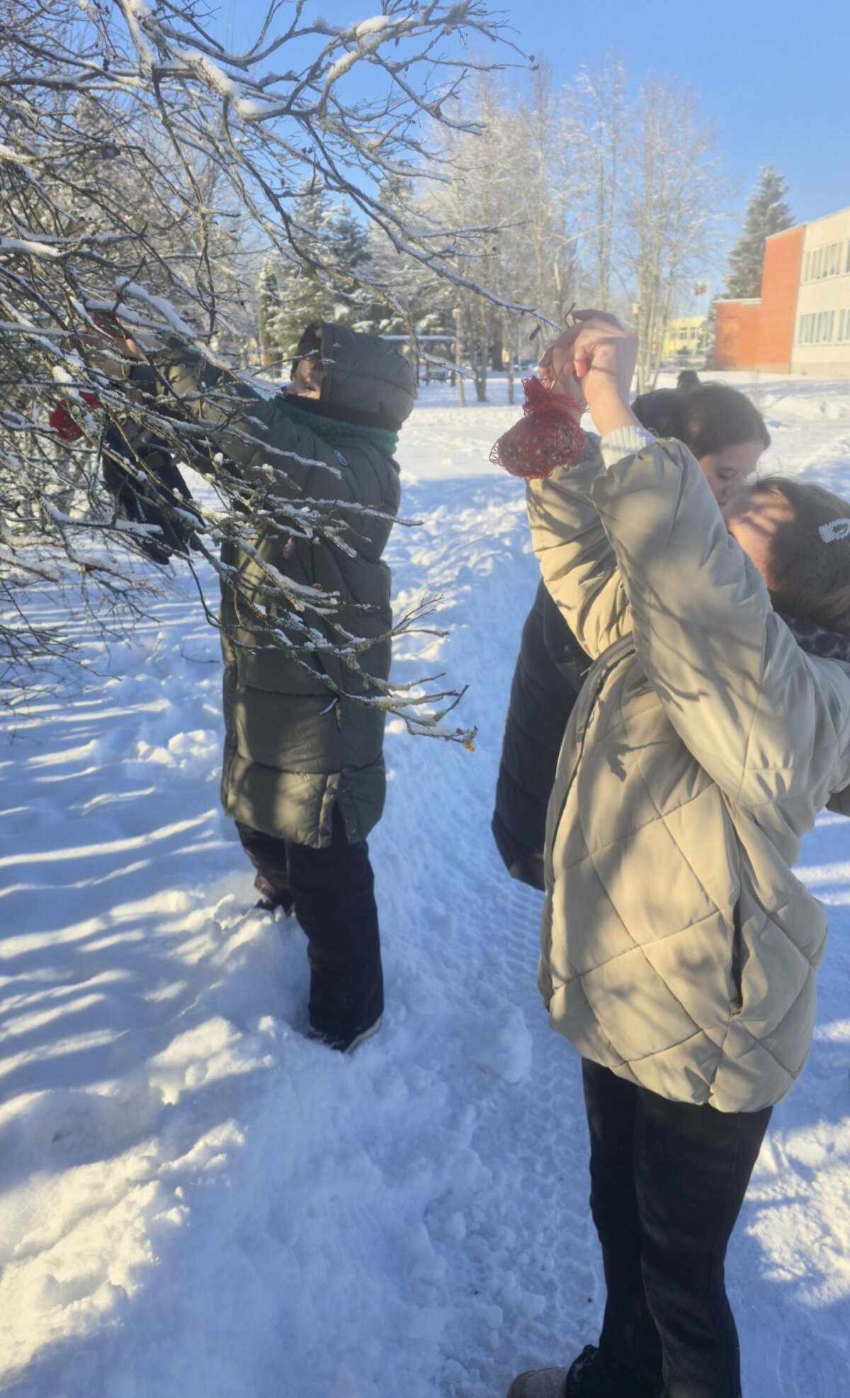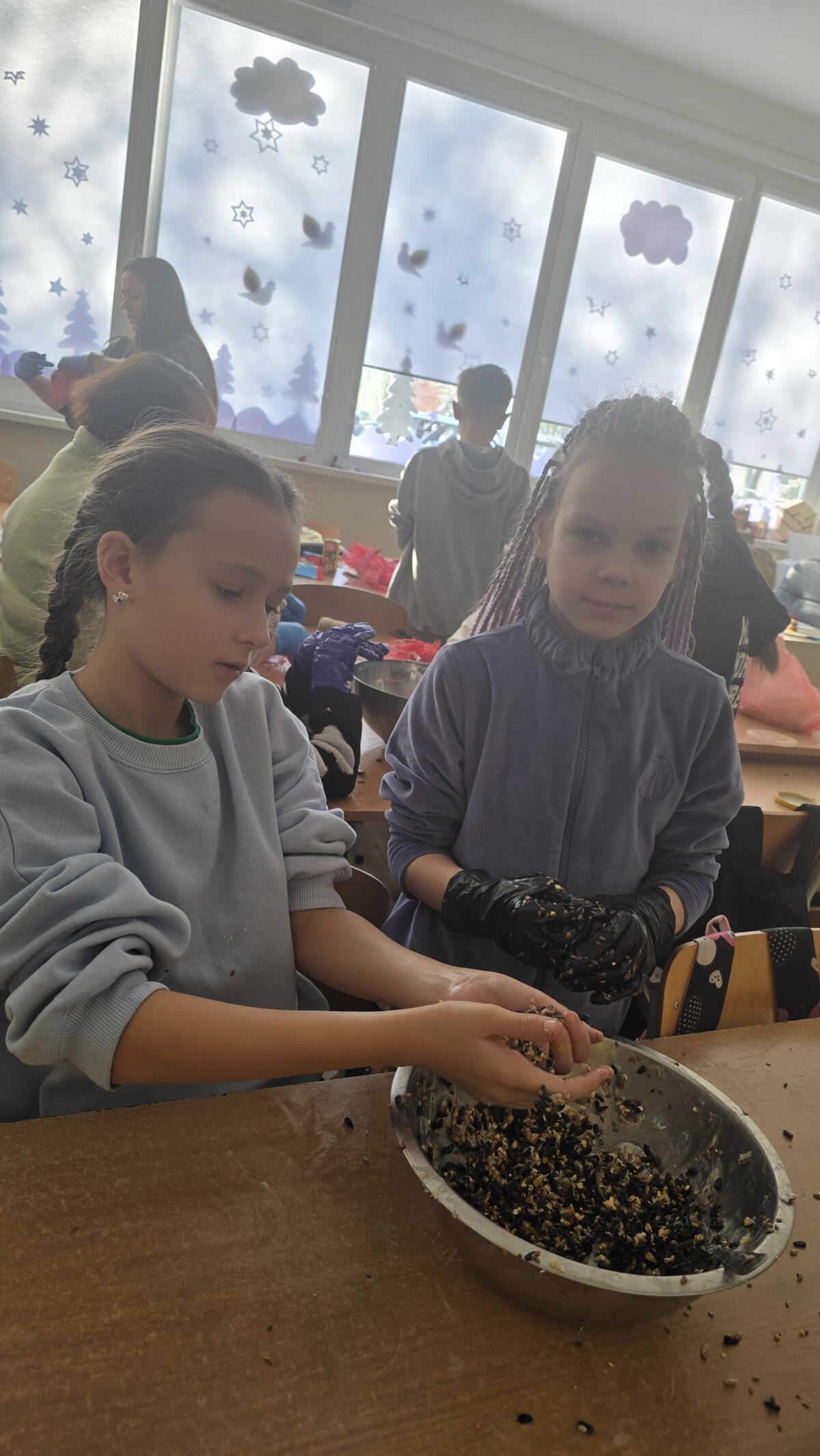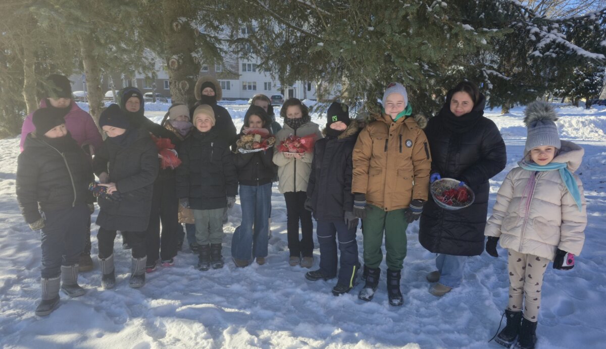 Tokią šaltą žiemą ketvirtokai nutarė pagelbėti paukšteliams, kad „baltasis badas... -