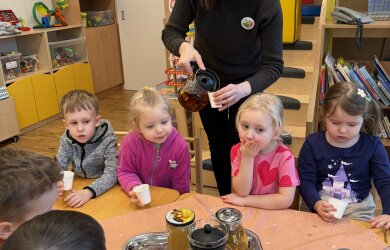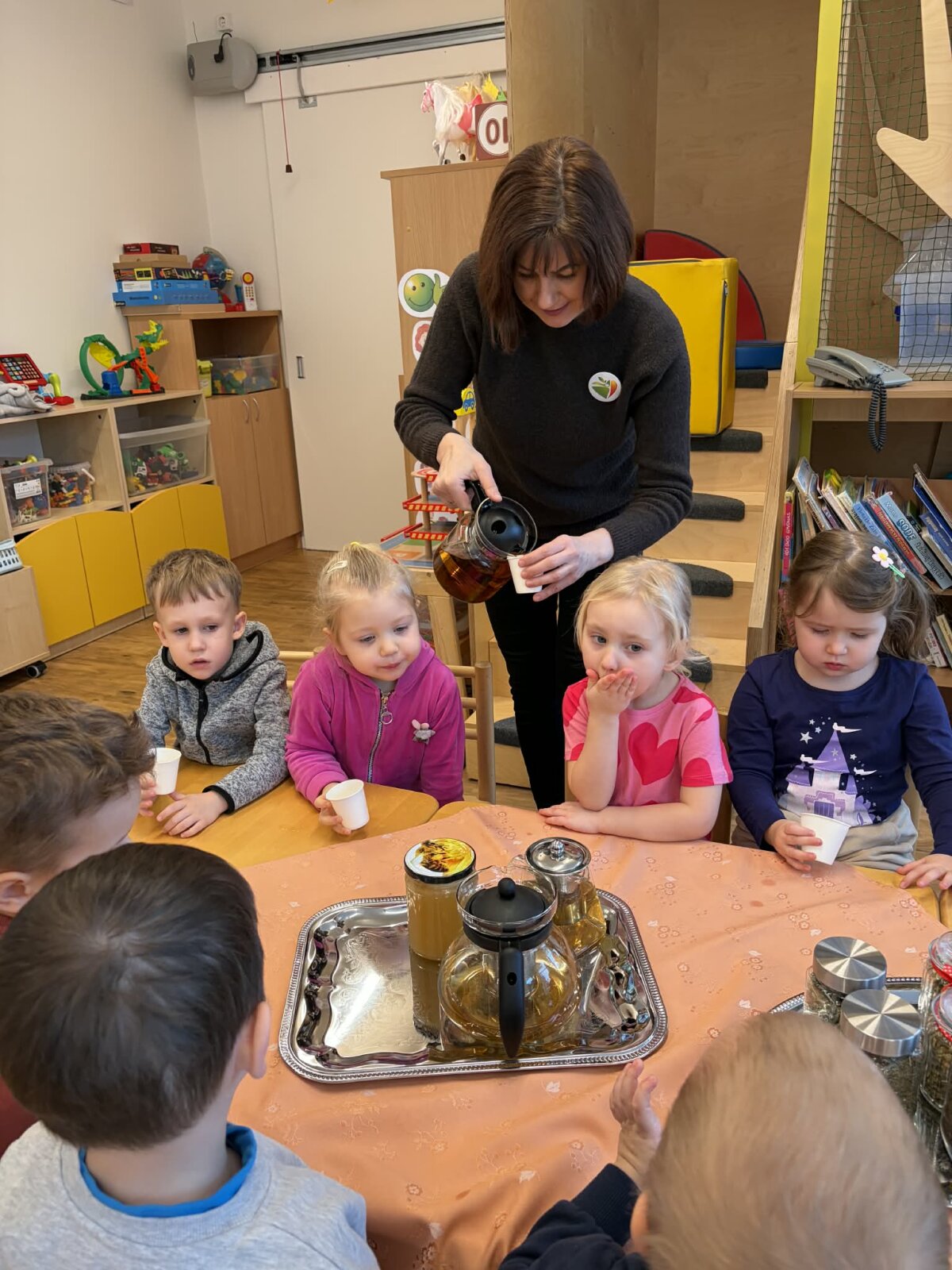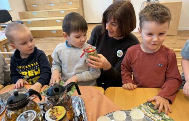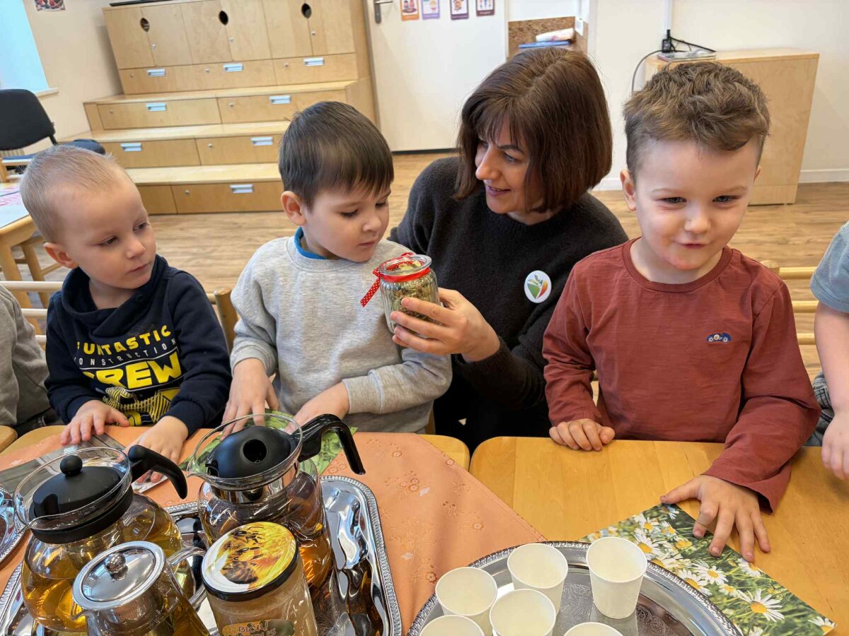 Už lango tvyrant žiemos šalčiui, vasario 10 dieną Druskininkų savivaldybės Viečiūnų progimnazijos ikimokyklinio ugdymo skyriaus „Linelis“ „Džiaugsmo“ ir „Smalsumo“ grupių ugdytiniai dalyvavo sveikatingumo užsiėmime „Arbatėlę aš geriu – sveikas ir žvalus esu“. Jaukios ir prasmingos veiklos metu vaikai susipažino su vaistažolėmis, jas uostė, sužinojo apie jų naudą sveikatai, ragavo arbatą, pagardintą medumi.