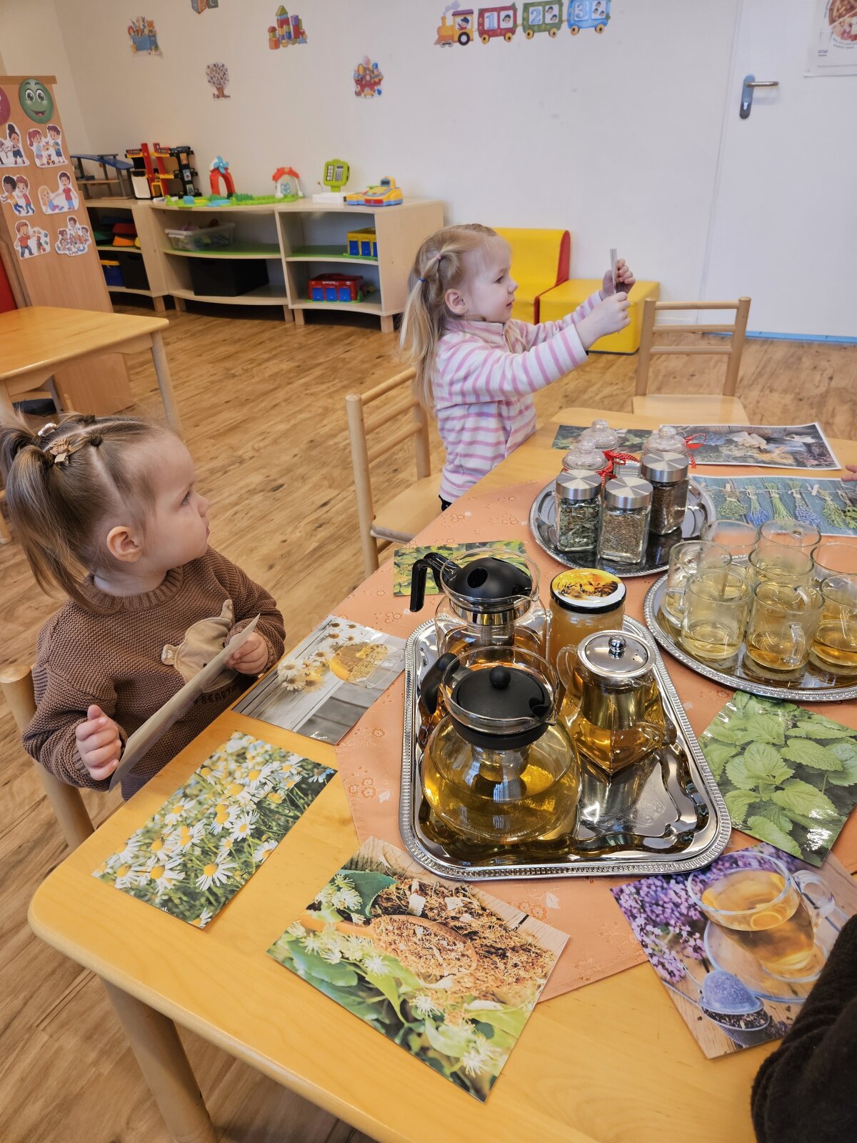 Degustacijos metu vaikai ragavo liepžiedžių, mėtų ir kmynų arbatą su medumi, uostydami atpažino aviečių lapų, čiobrelių ir ramunėlių aromatus. Praktinės veiklos metu ugdytiniai bandė atspėti arbatų rūšis, dalijosi pastebėjimais, mokėsi įvardyti pojūčius ir išklausyti draugų nuomonę.