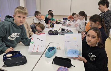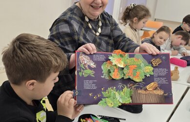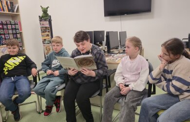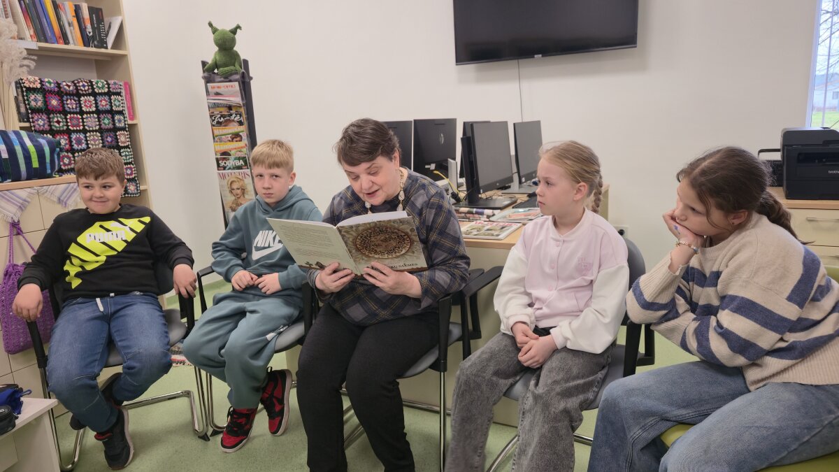 Balandžio 17 dieną 3 klasės mokiniai dailės pamokos metu keliavo į Viečiūnų biblioteką. Čia mokinukus pasitiko linksmai nusiteikusi bibliotekininkė Nijolė. Ji pasakojo apie bibliotekos darbuotojo profesiją, skaitė dzūkišką pasaką „Dzvi varlukės“, o vėliau dar ir surengė dzūkiškų žodžių viktoriną. Mokiniai taip pat klausė Viltės sekamos sakmės „Apiej busilo keliones“, smagiai šnekučiavosi, piešė skaitytos pasakos personažus.