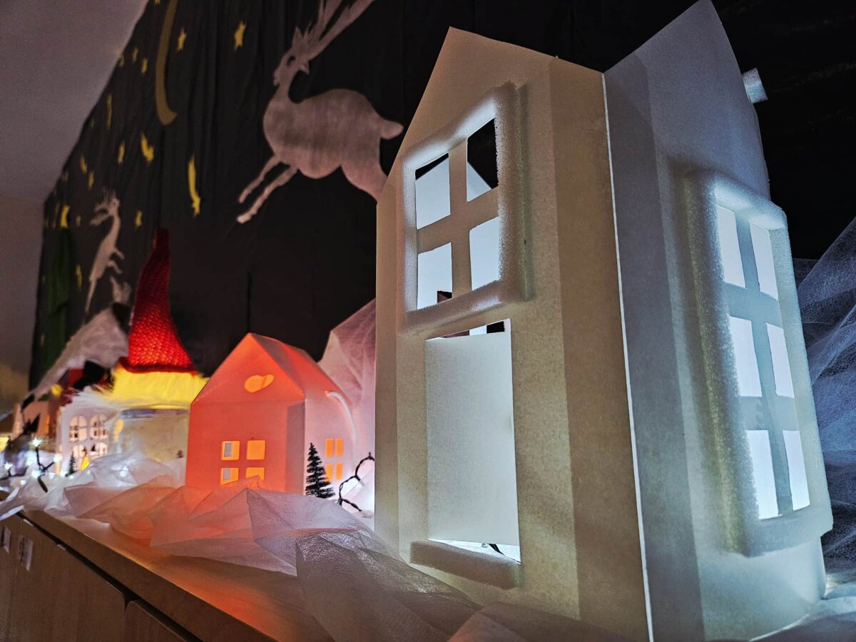 Džiaugiamės šiltu bendruomeniškumu, kuris suvienijo vaikus, tėvus ir pedagogus. Kiekvienas rankomis sukurtas darbelis tapo maža stebuklingo miestelio dalimi. Švieselėmis suspindusi erdvė virto ne tik kalėdiniu kampeliu, bet ir įkvepiančia kūrybos, draugystės bei artumo vieta.