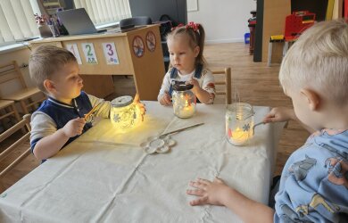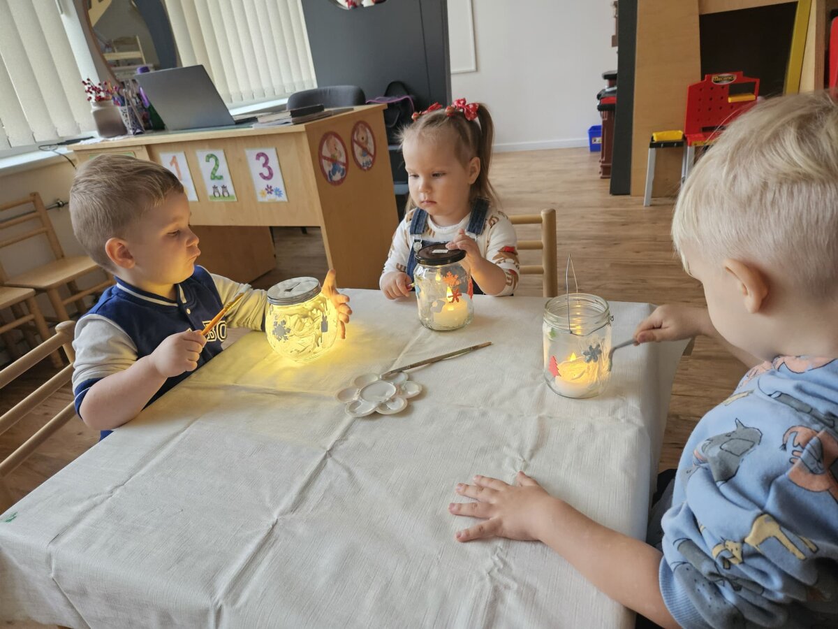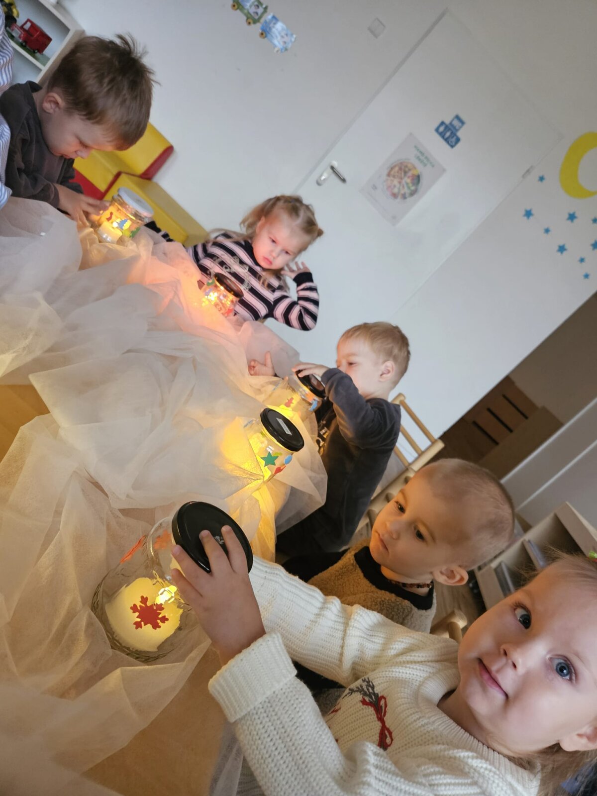 Gruodžio 1–4 d. ikimokyklinio ugdymo grupėje „Džiaugsmas“ vyko trumpalaikis projektas „Kalėdų miestelis“. Vaikai kartu su tėveliais aktyviai įsitraukė į kūrybines veiklas: namuose jie gamino įvairiausius šventinius namelius, o grupėje mažieji kūrė žibintus, dekoruodami juos balto guašo aplikacijomis, blizgiais akcentais ir kitomis kalėdinėmis puošmenomis.